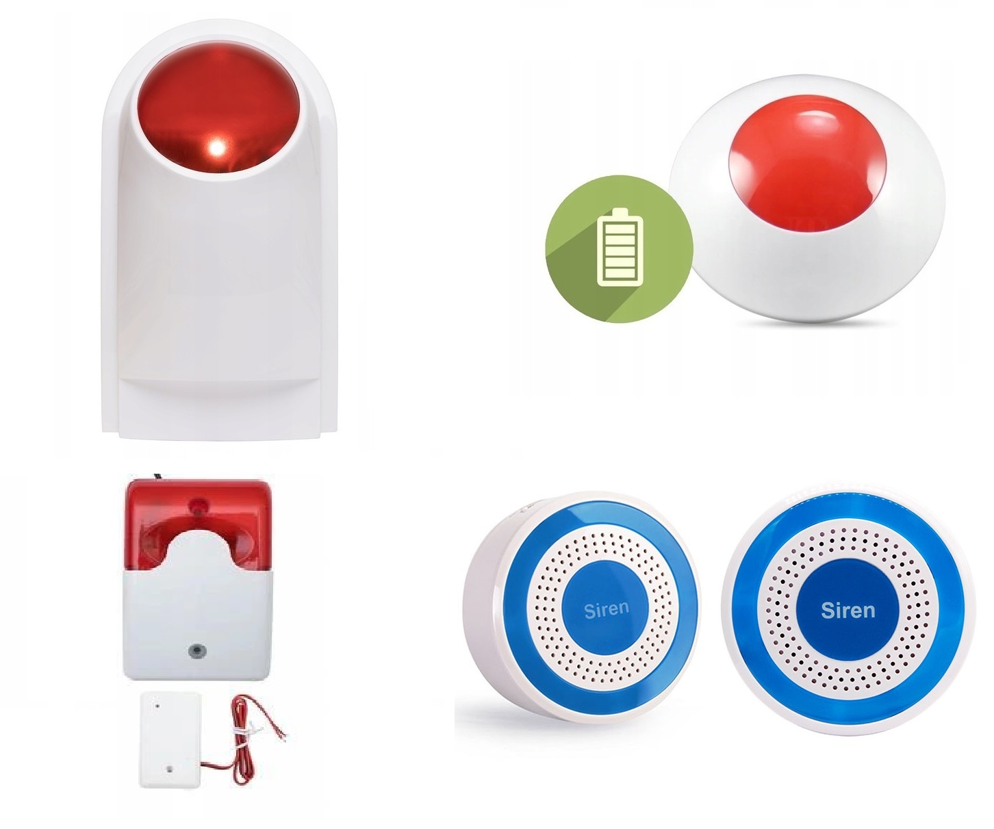 Z alarmem możemy też sparować 4 rodzajów syren bezprzewodowych. W ofercie posiadamy: