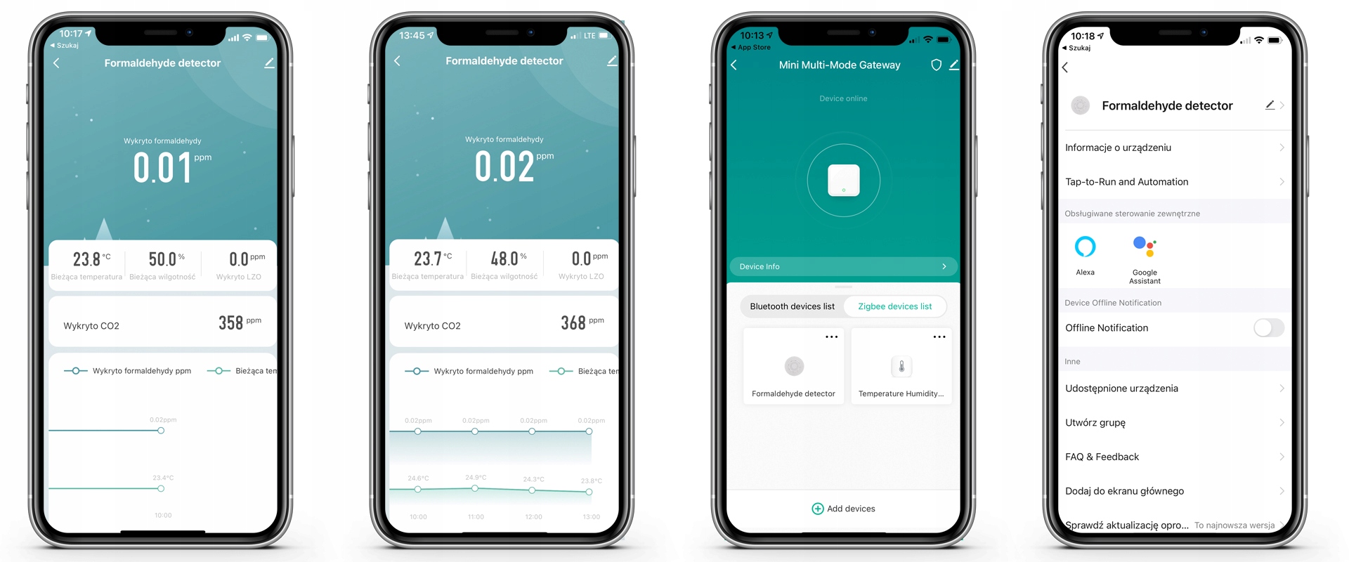 Aplikacja, która obsługuje urządzenie może połączyć ze sobą ogromną ilość innego typu czujników. Można realizować sceny, używać urządzenia z Timerem, tworzyć różne ustawienia dla konkretnych zachowań itp.