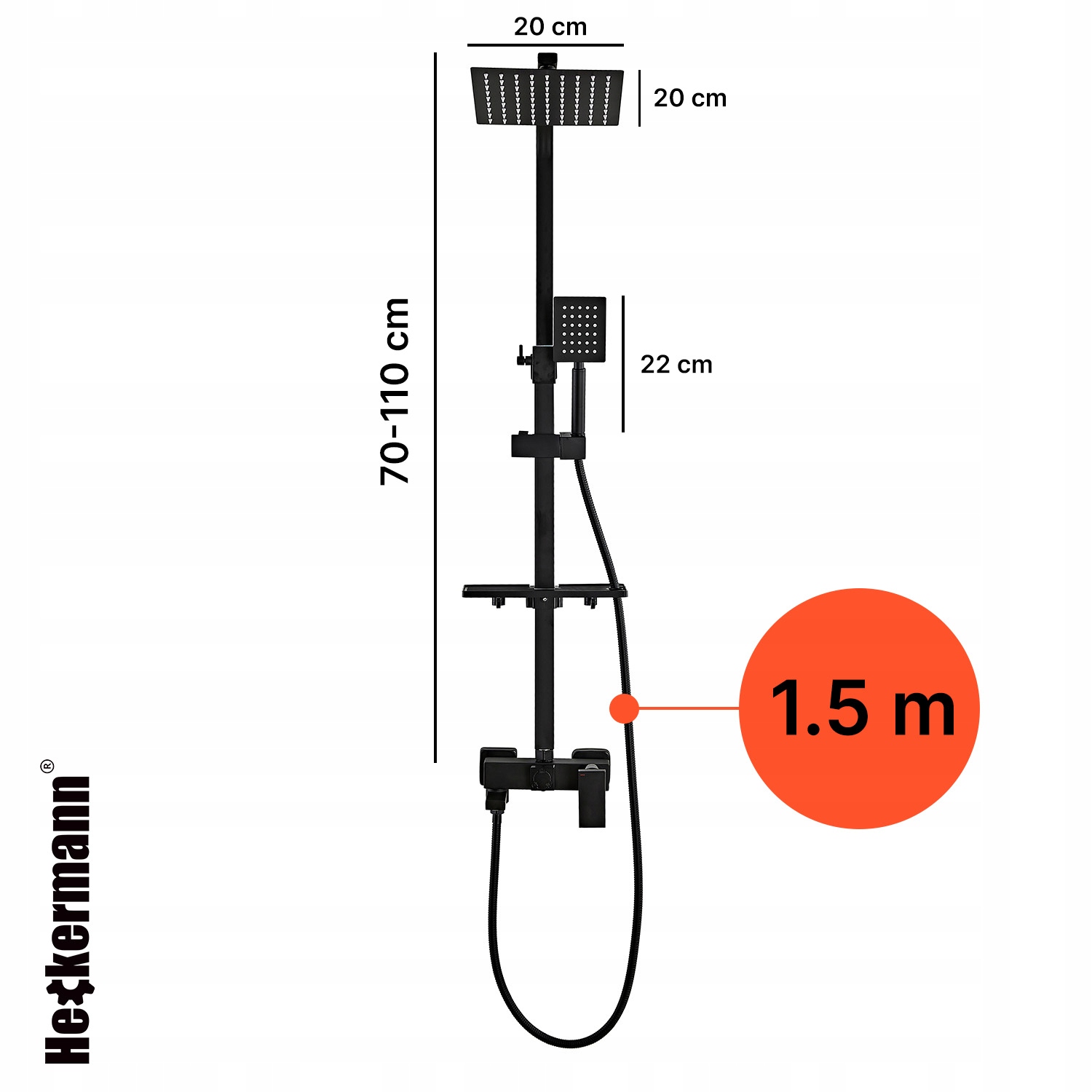 Deszczownica łazienkowa zestaw prysznicowy kolumna prysznicowa regulowana czarna Heckermann