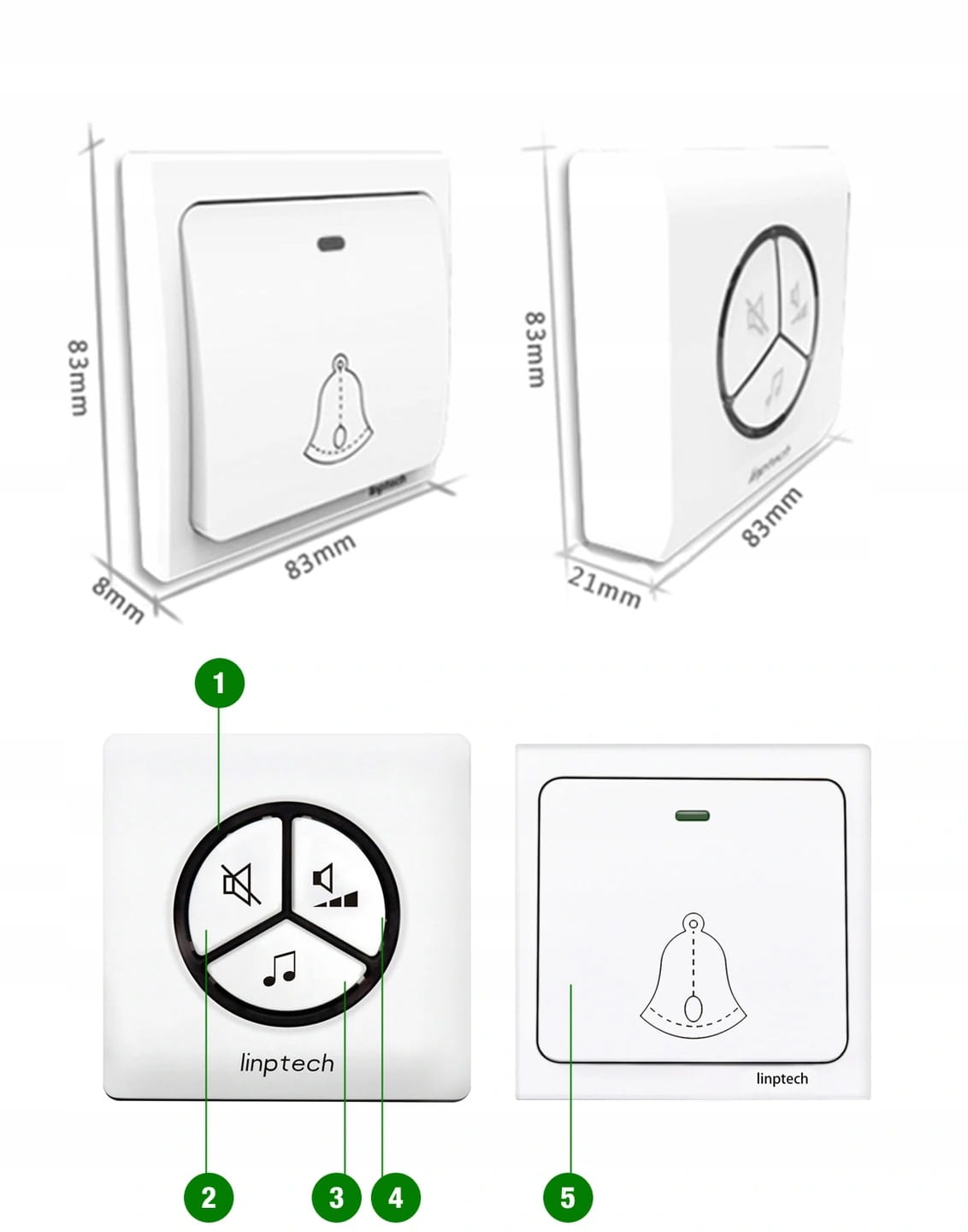 - Bezbateryjny dzwonek bezprzewodowy G1 Linbell - 1 nadajnik i 1 odbiornik