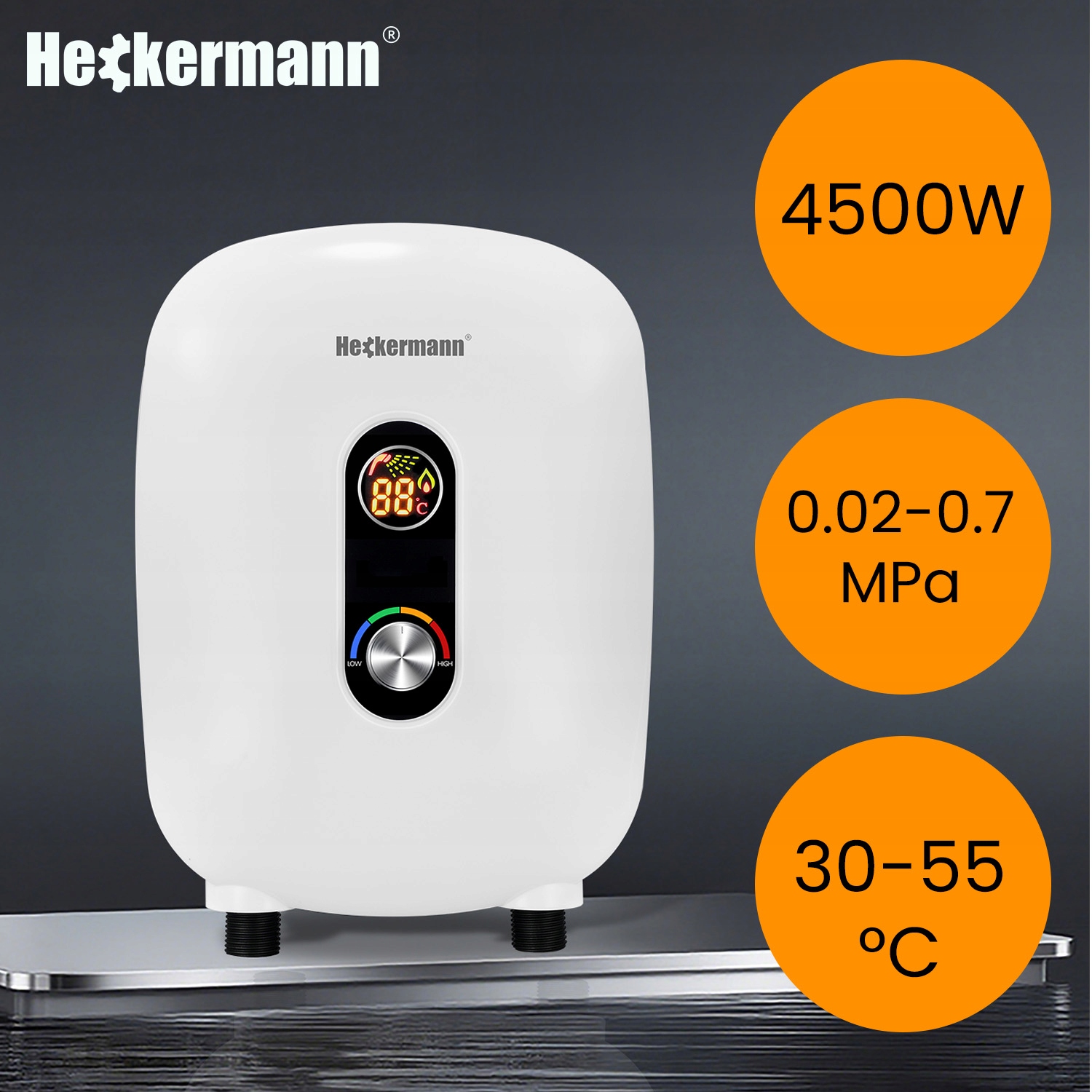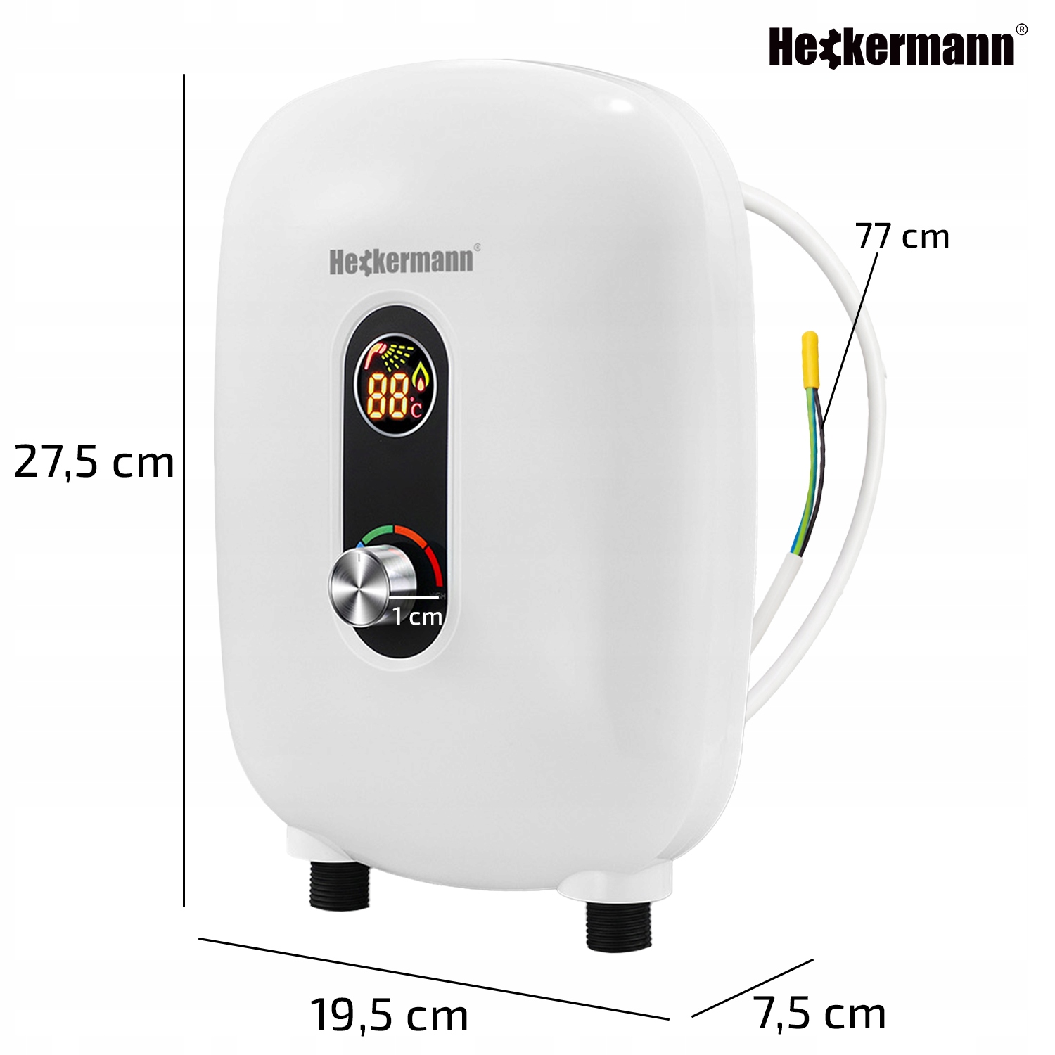 Przepływowy elektryczny podgrzewacz wody 4,5 kW Heckermann SL-X5-45 to kompaktowe urządzenie, które zapewnia natychmiastowy dostęp do ciepłej wody – dokładnie wtedy, kiedy jej potrzebujesz.