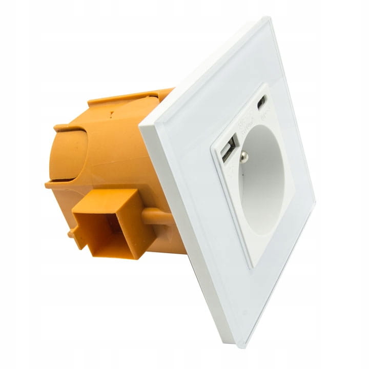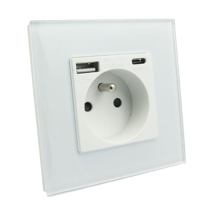 Gniazdo elektryczne z uziemieniem oraz zabezpieczeniem torów prądowych przed dziećmi.Efektowne gniazdo elektryczne charakteryzujące się bardzo szybkim ładowanie Quick Charge wyposażone w dwa porty USB typu A oraz C. Gniazdo w komplecie ze szklanym panelem. Gniazdko idealnie pasuje do innych naszych produktów z serii B-Line, jak włączniki dotykowe, mechaniczne itp.