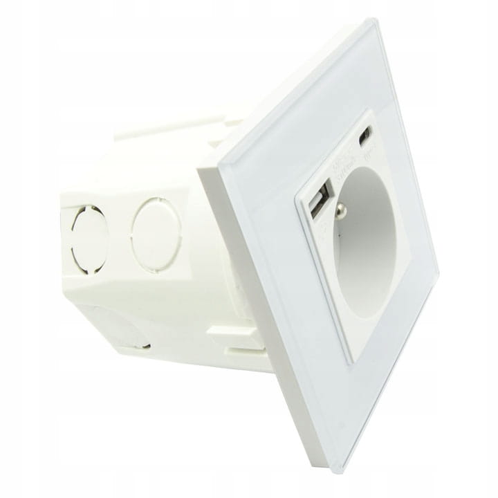 Gniazdo gniazdko USB A i C elektryczne szkło białe 3100 mA B-Line