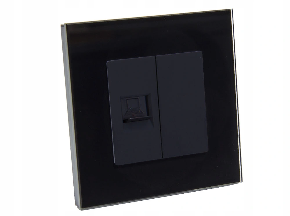 Efektowne gniazdo internetowe LAN RJ45 ze szklanym panelem w kolorze czarnym. Gniazdko idealnie pasuje do innych naszych produktów z serii B-Line, jak włączniki dotykowe, mechaniczne itp.