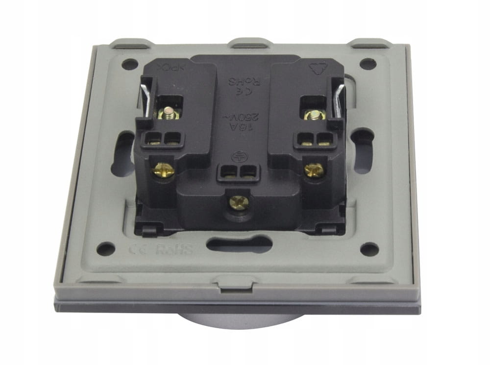 Efektowne gniazdo elektryczne ze szklanym panelem w kolorze szarym. Gniazdko idealnie pasuje do innych naszych produktów z serii B-Line, jak włączniki dotykowe, mechaniczne itp.