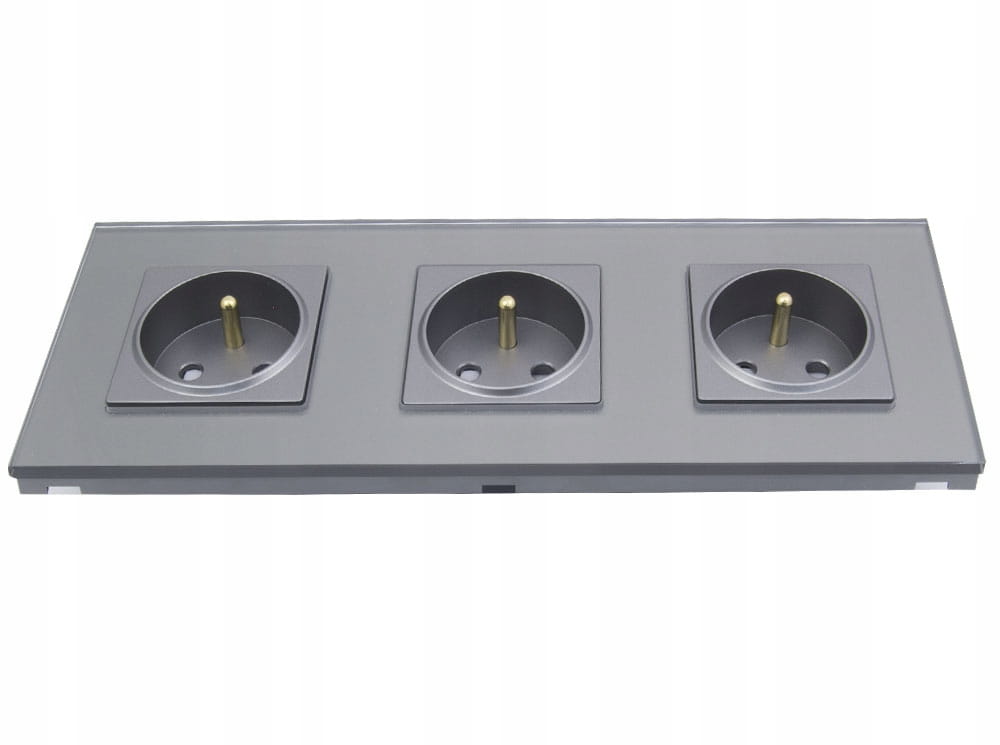 Gniazdo gniazdko elektryczne potrójne szklane szare B-Line