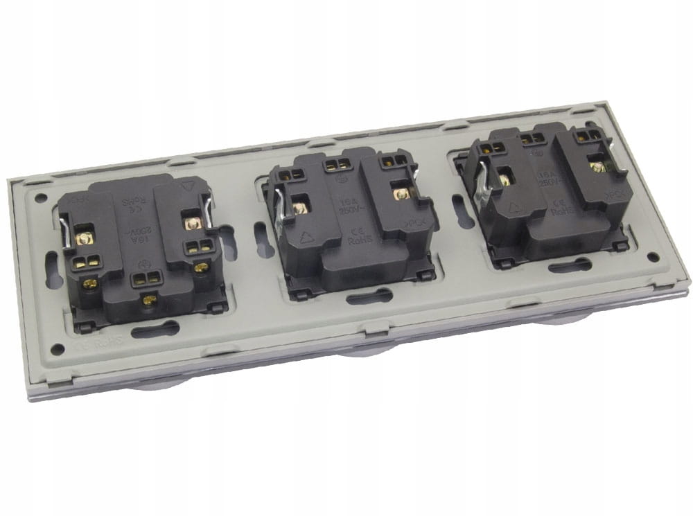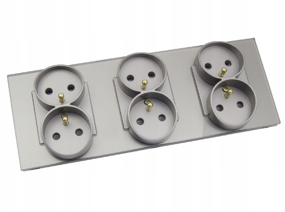 Gniazdo gniazdko elektryczne potrójne szklane z bolcem szare B-Line