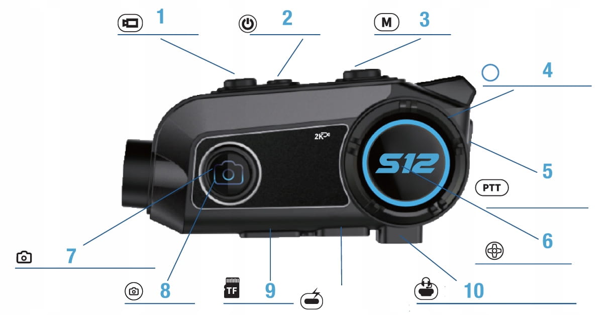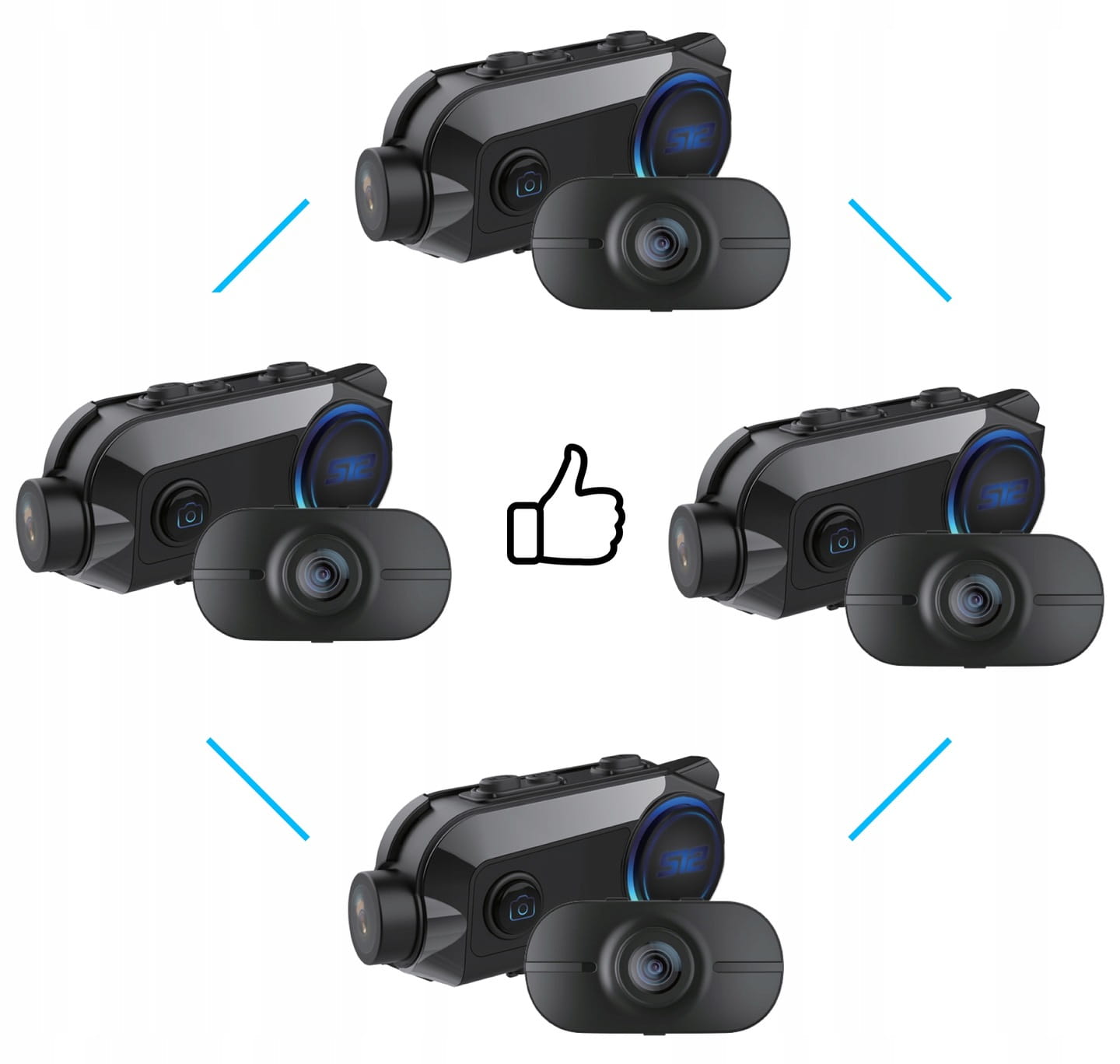 Interkom motocyklowy z kamerą przód (Sony IMX335 Super Full HD 2K) + tył (Full HD) SCS S12 - konferencja
