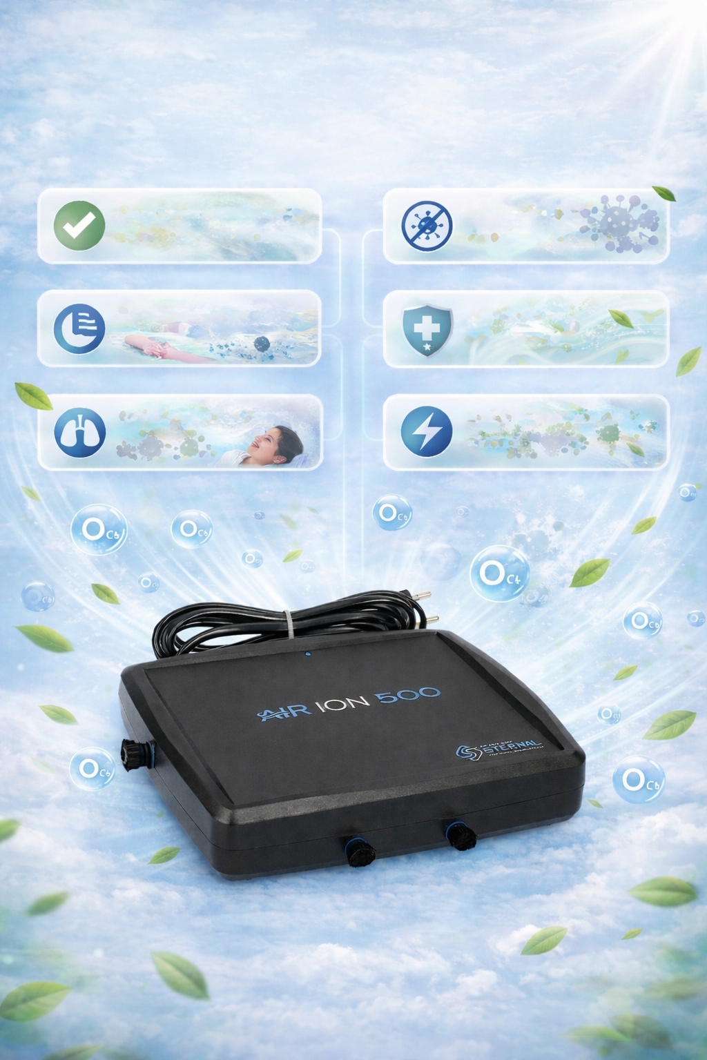 Jonizator powietrza AIR ION 500 to wydajne urządzenie poprawiające jakość powietrza w pomieszczeniach. Generuje do 200 000 000 jonów ujemnych na cm³, co pozwala skutecznie redukować zanieczyszczenia, których nie wychwytują tradycyjne filtry.