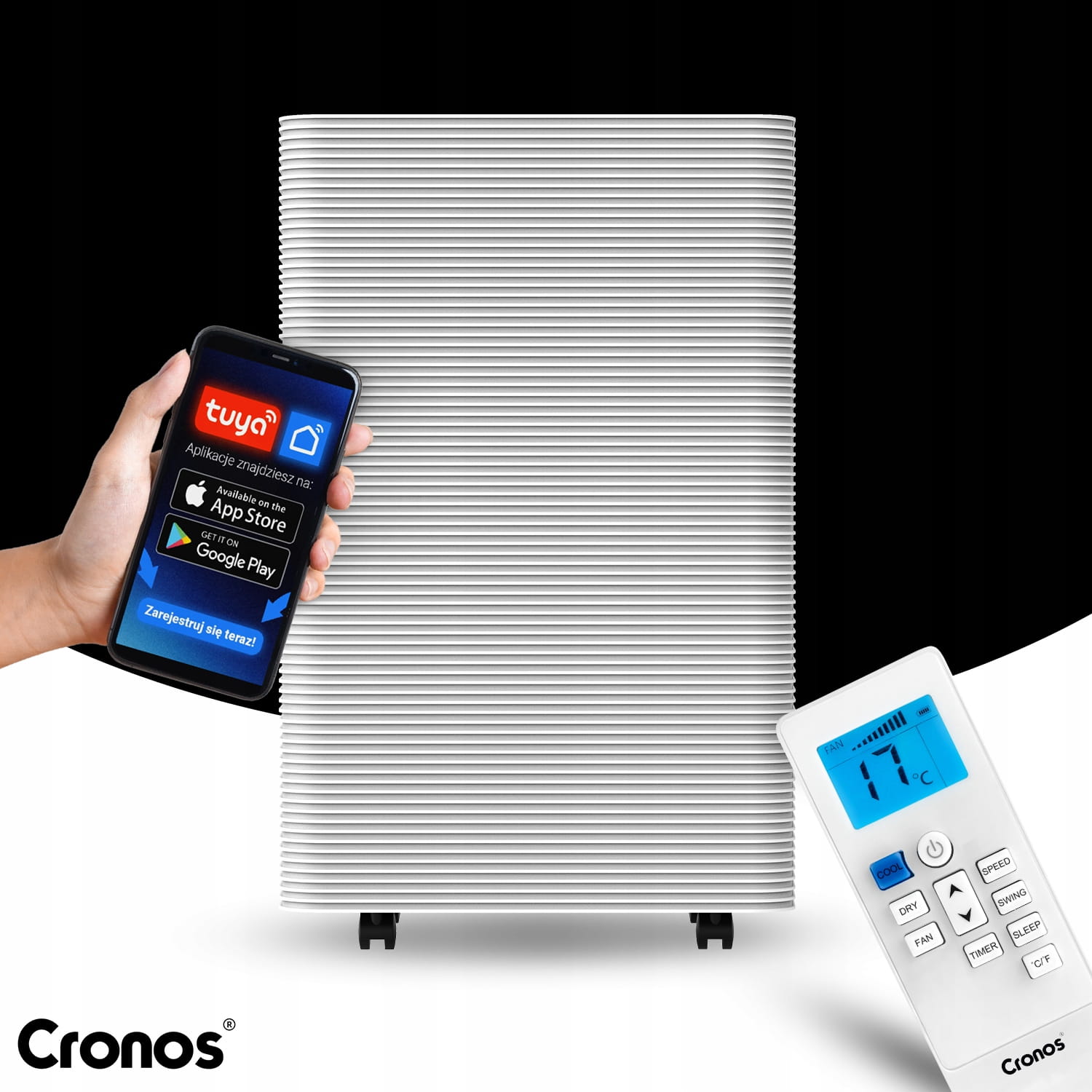 Klimatyzator przenośny 3,5 W cichy 32 m2 pilot WiFi Tuya akcesoria Cronos