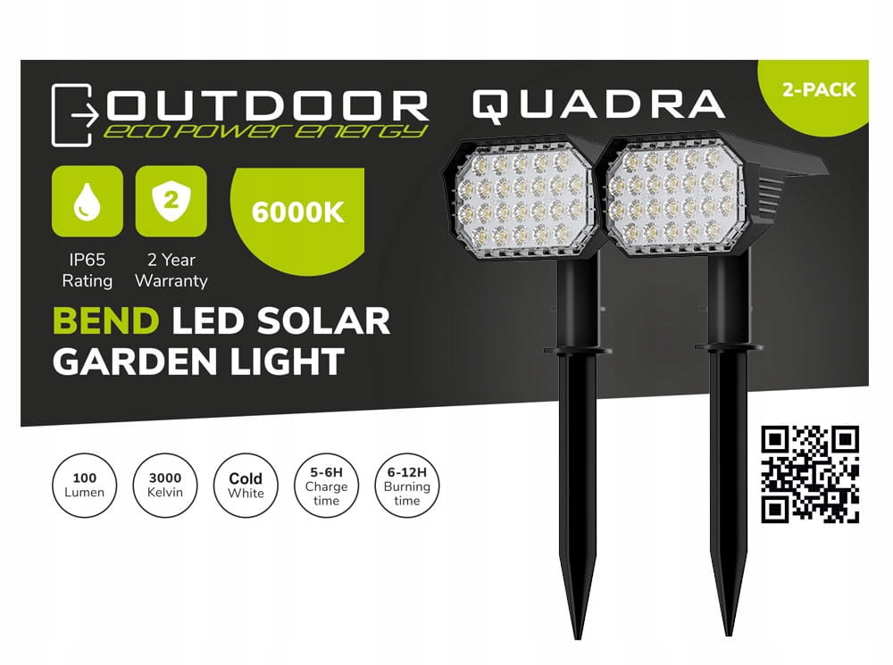 Lampa solarna wbijana Quadra reflektor LED ogrodowy B-Line 2 szt.