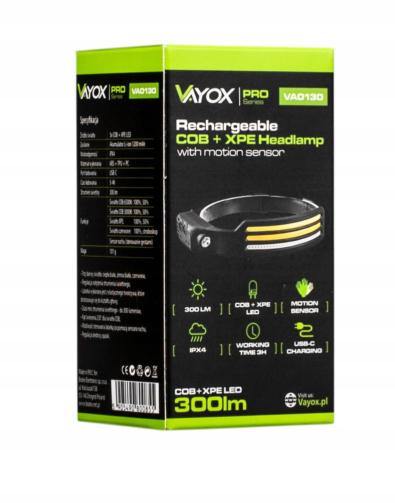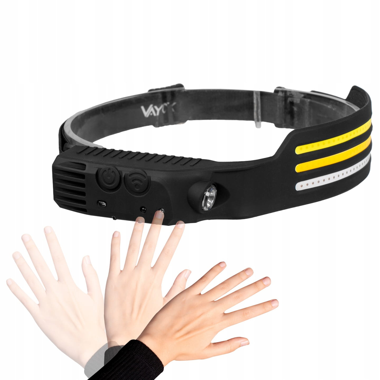 Latarka czołowa czołówka 4x LED akumulatorowa czujnik pasek USB-C IPX Vayox