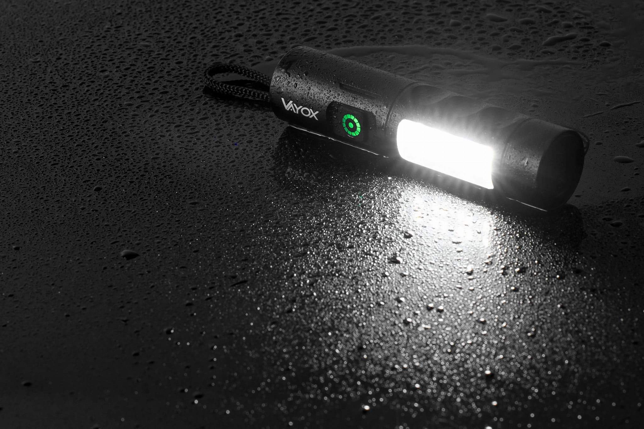 Latarka LED taktyczna akumulatorowa ze światłem bocznym 2 kolory USB-C Vayox