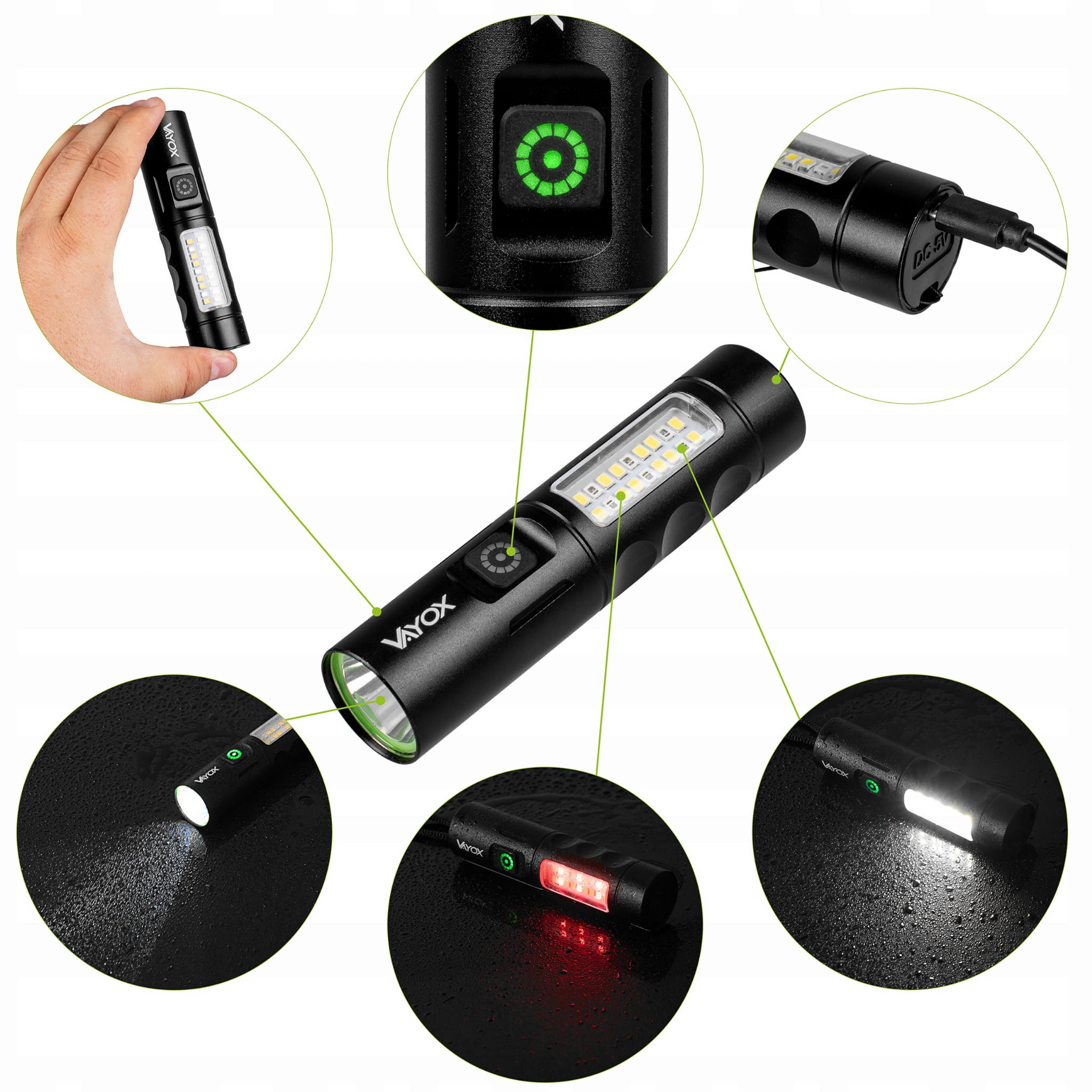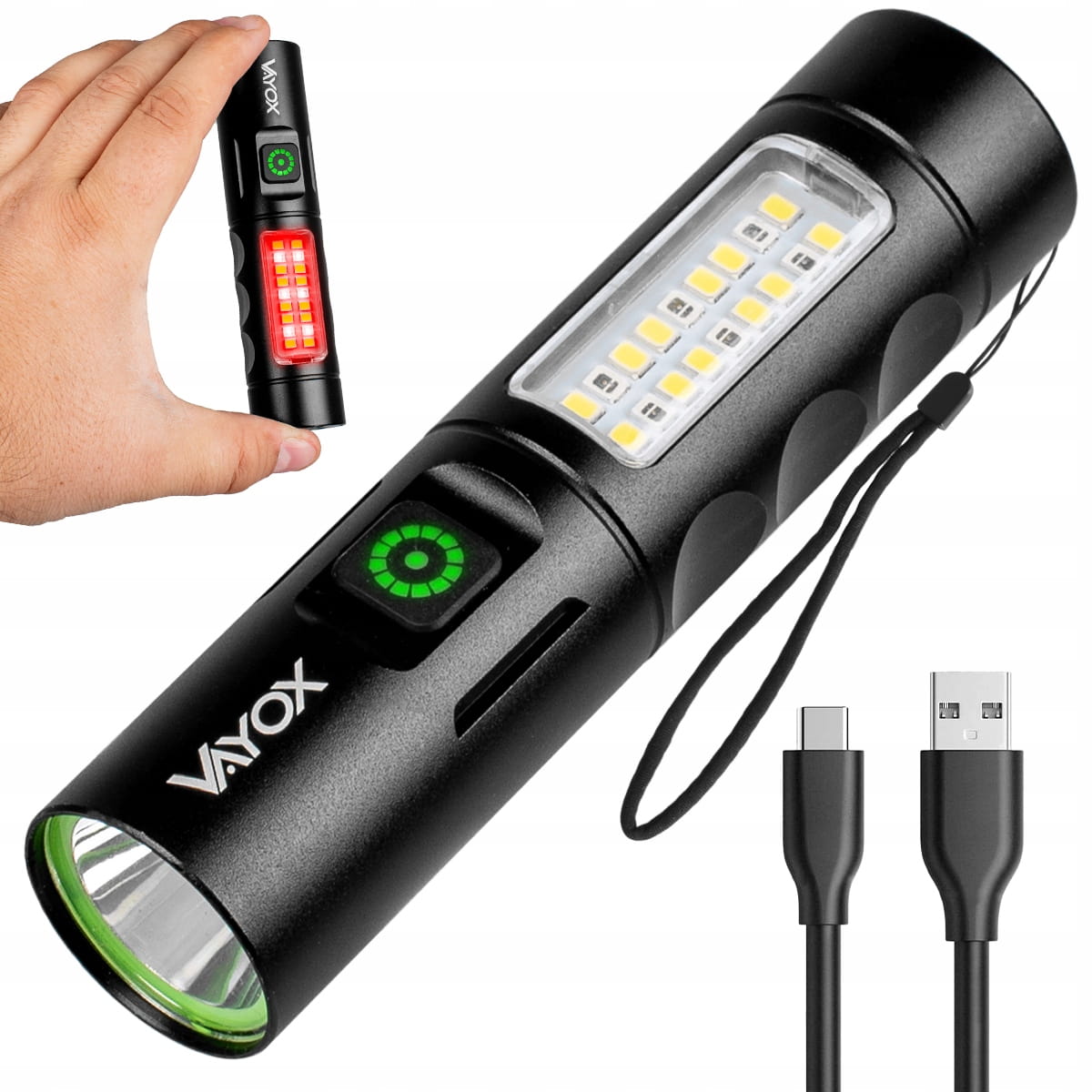 - Latarka LED taktyczna akumulatorowa ze światłem bocznym 2 kolory USB-C Vayox
