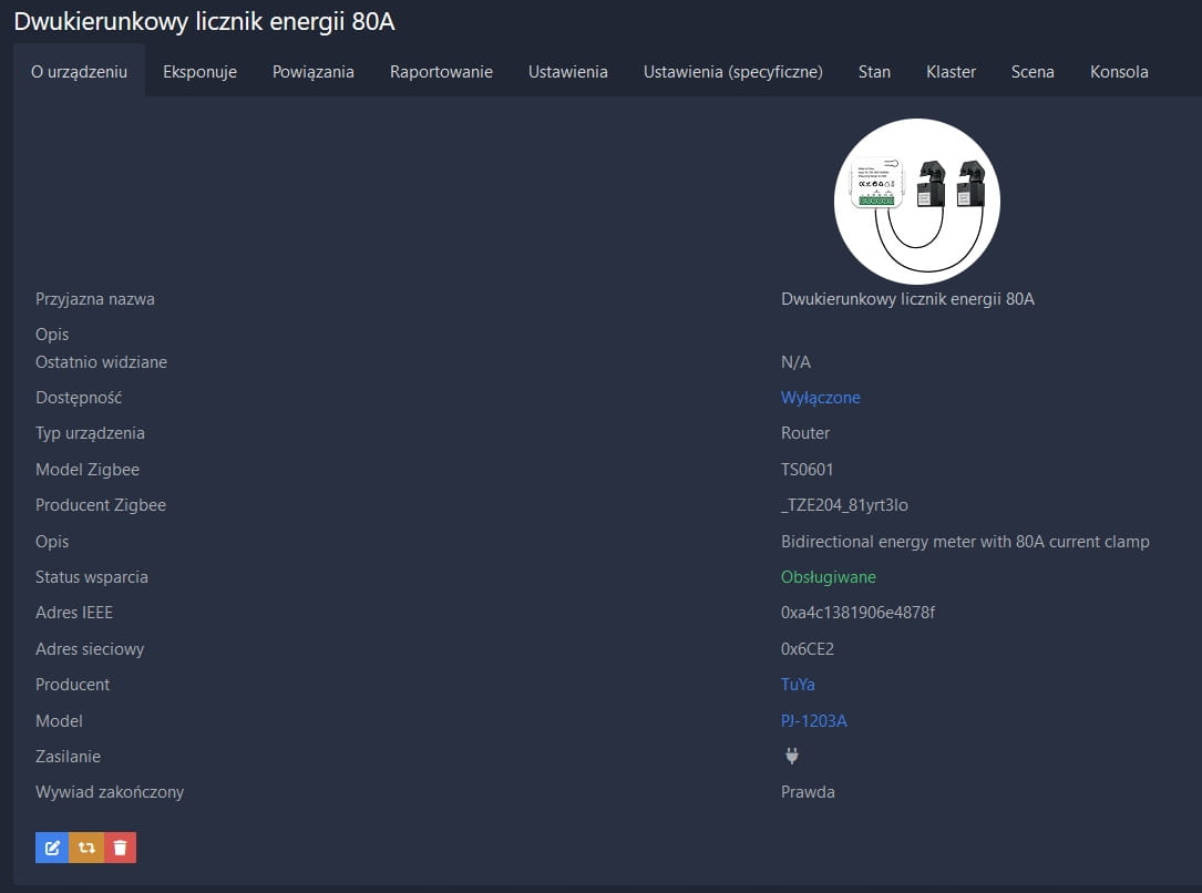 Licznik jest kompatybilny z oprogramowaniem Home Assistant poprzez ZigBee2MQTT.