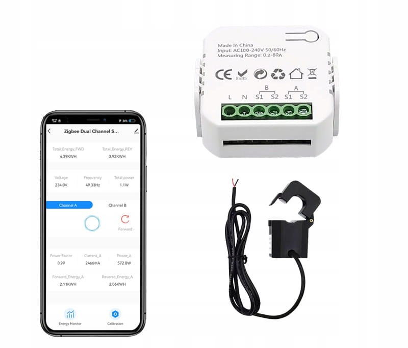 Dwukierunkowy Licznik ZigBee 3.0 do aplikacji Tuya, Smart Life i Home Assistant z przekładnikiem 80 A!