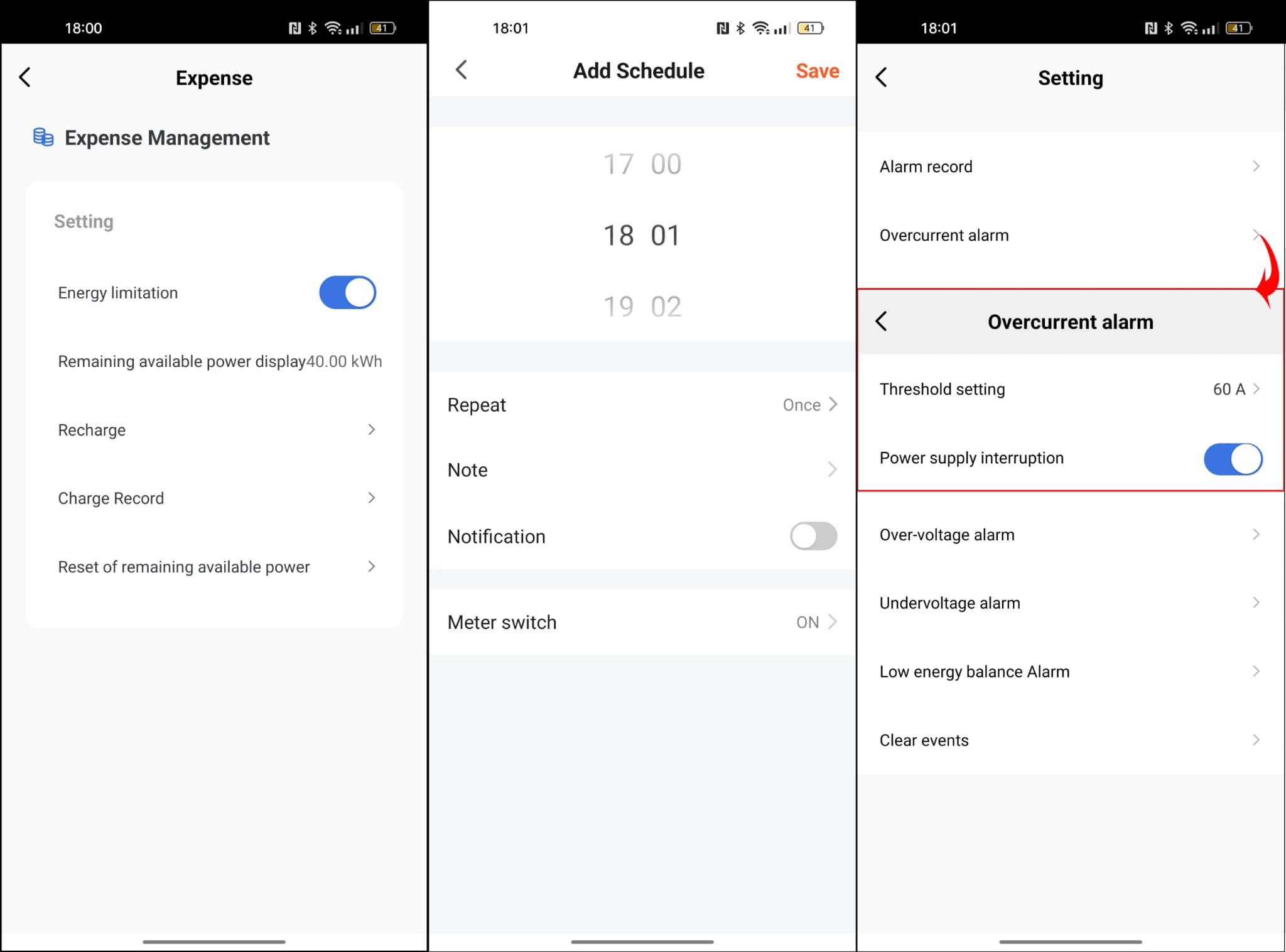 • Funkcja Expense pozwala na wprowadzenie limitu energii, po przekroczeniu może nastąpić automatyczne wyłączenie prądu.