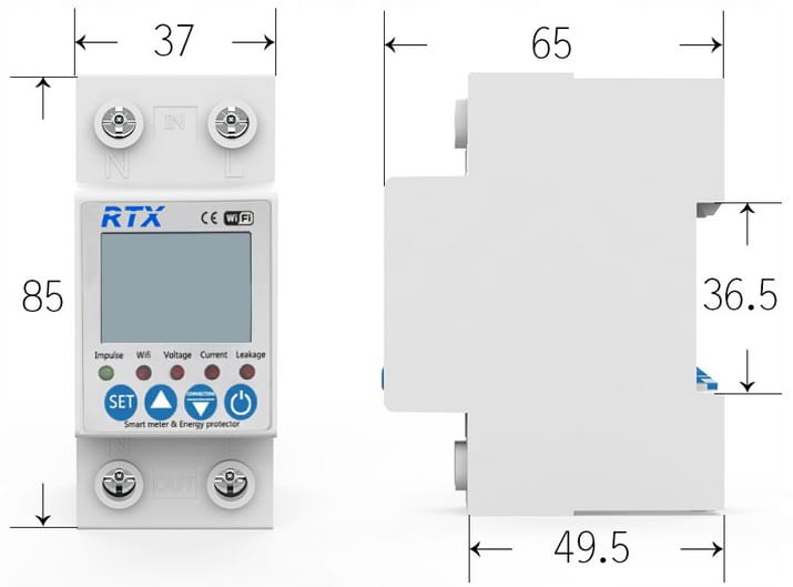 RTX Licznik Miernik Energii Prądu Watomierz Pomiar do 63A TUYA WiFi DIN Marka RTX