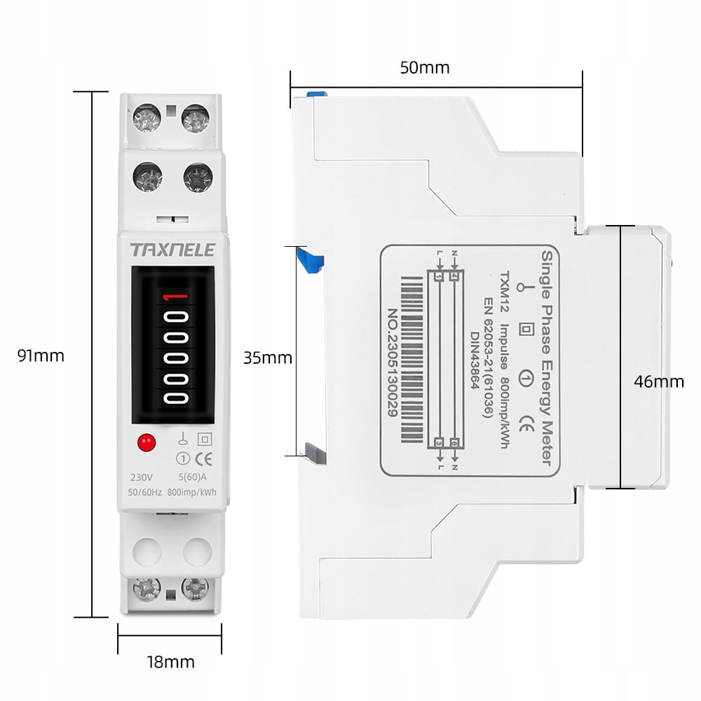 Licznik analogowy zużycia energii elektrycznej prądu watomierz na szynę DIN