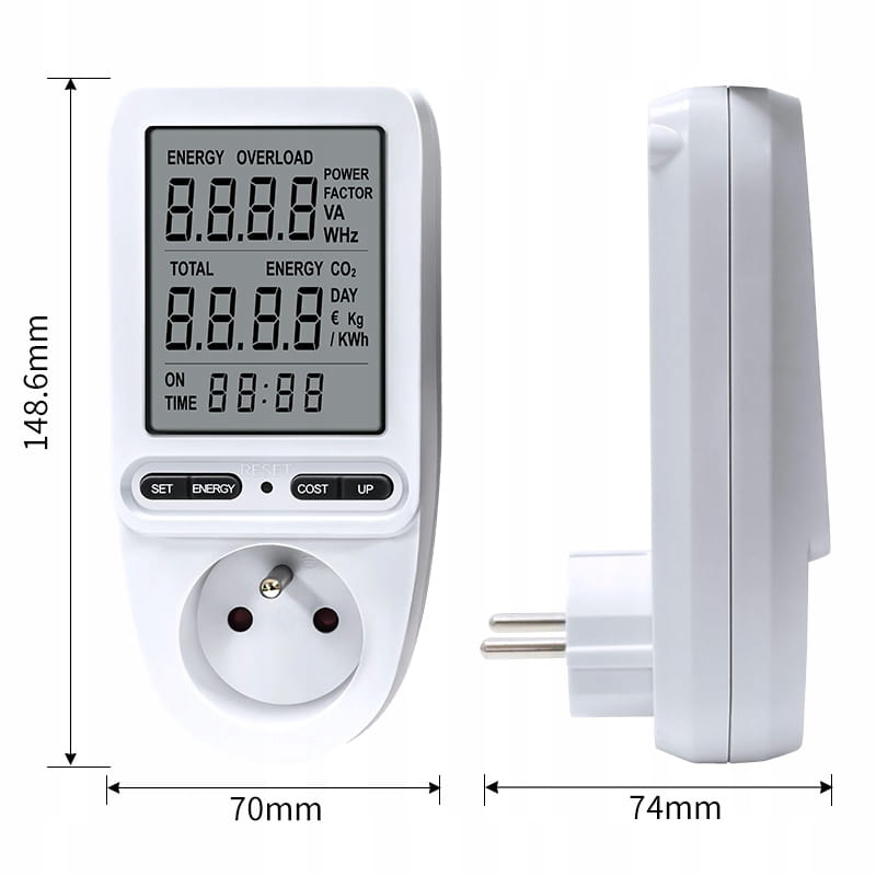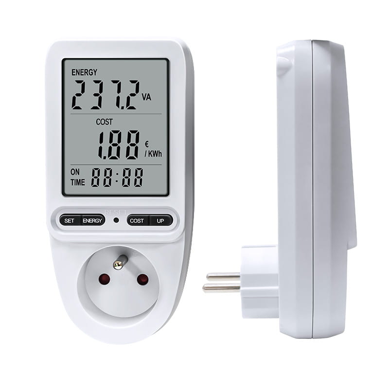 Posiada duży wyświetlacz LCD oraz możliwość wprowadzenia ceny energii elektrycznej i pomiaru kosztów.
