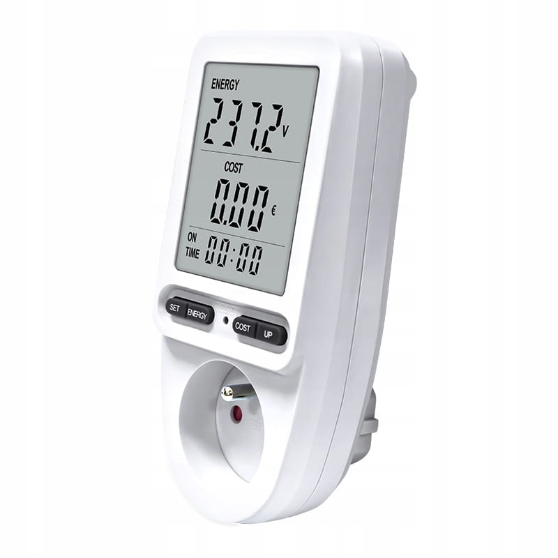 Licznik umożliwia pomiar zużycia energii elektrycznej i obliczenie kosztów zużytej energii podłączonego urządzenia.