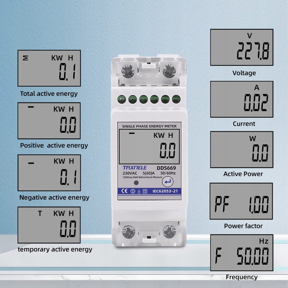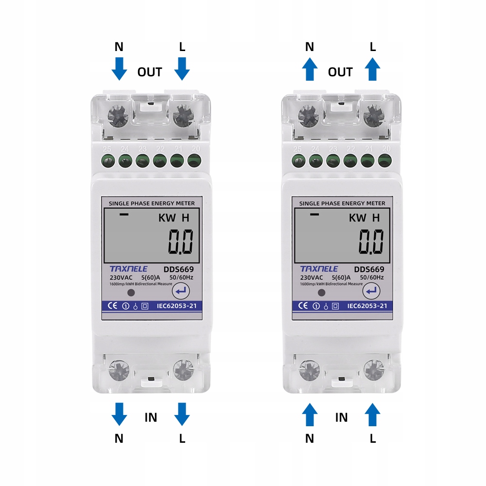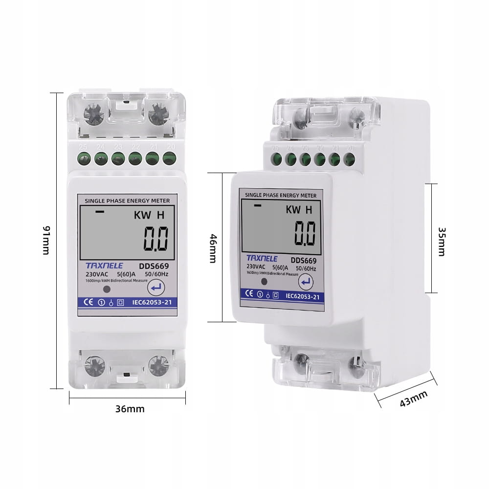 Licznik energii prądu mocy jednofazowy 1-faza dwukierunkowy