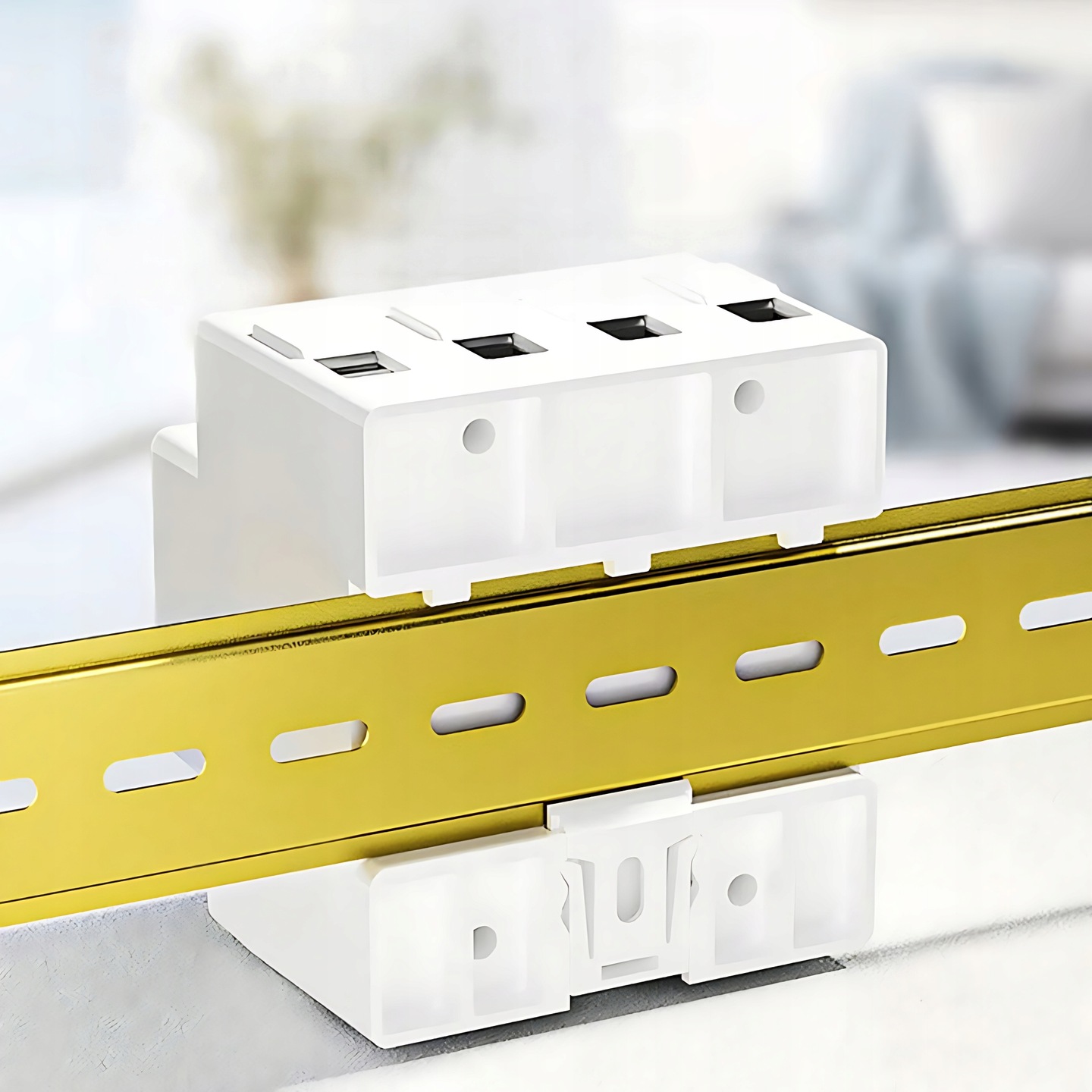 - Przystosowany do montażu na szynie DIN 35 mm (4 pola w rozdzielnicy)