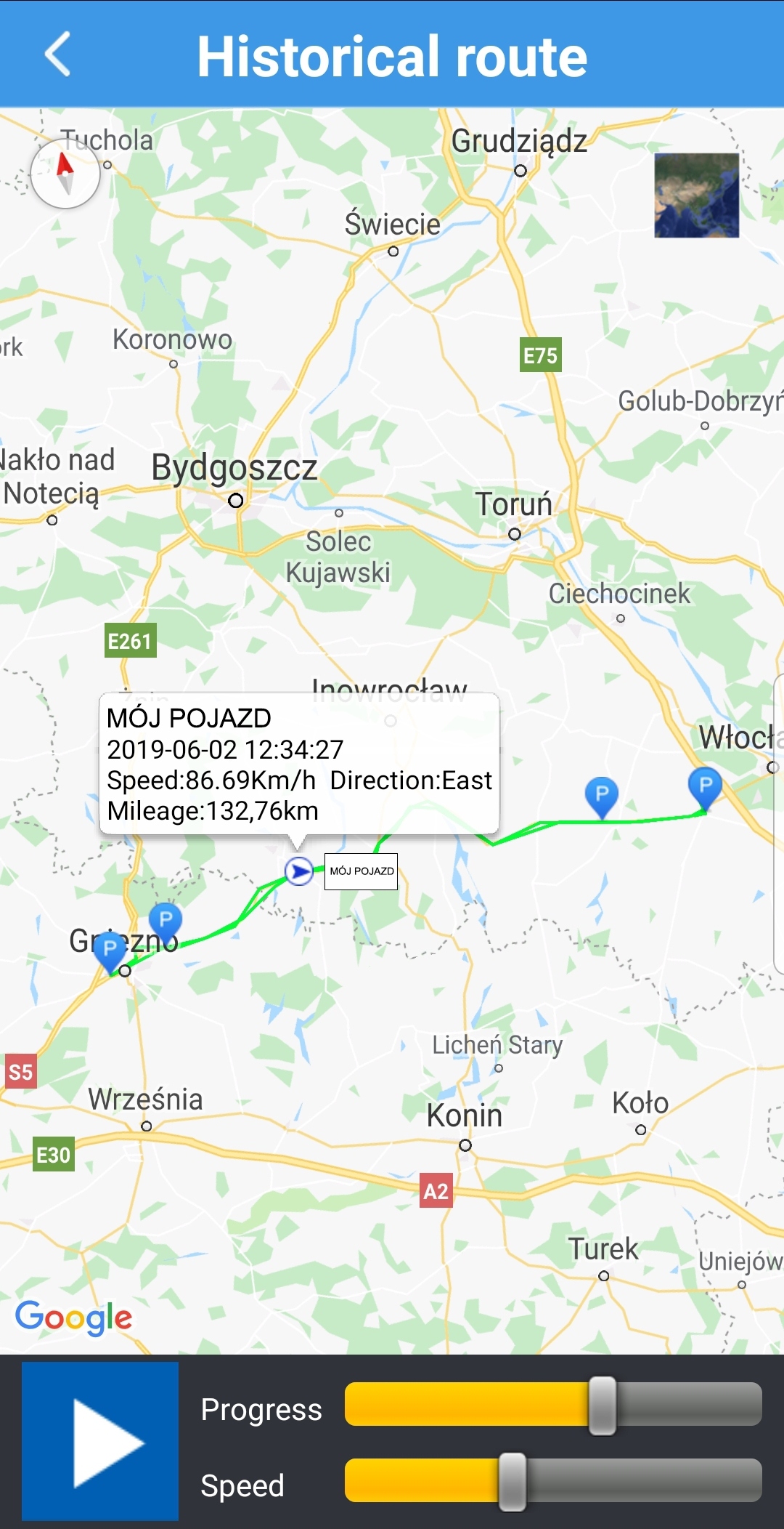 - Możliwość odtworzenia historii przejazdów do 6 miesięcy wstecz