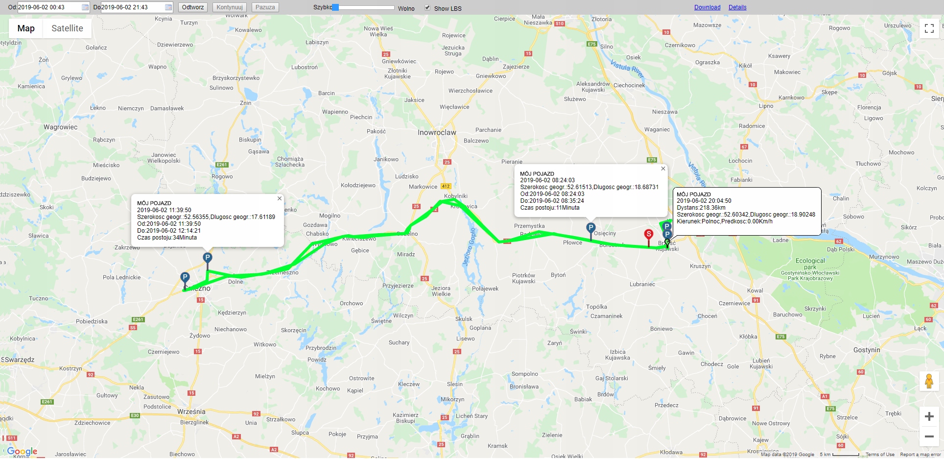 - Śledzenie poprzez otrzymanie SMS z odnośnikiem do map Google lub rzeczywiste przez stronę www lub aplikacja na smartfona