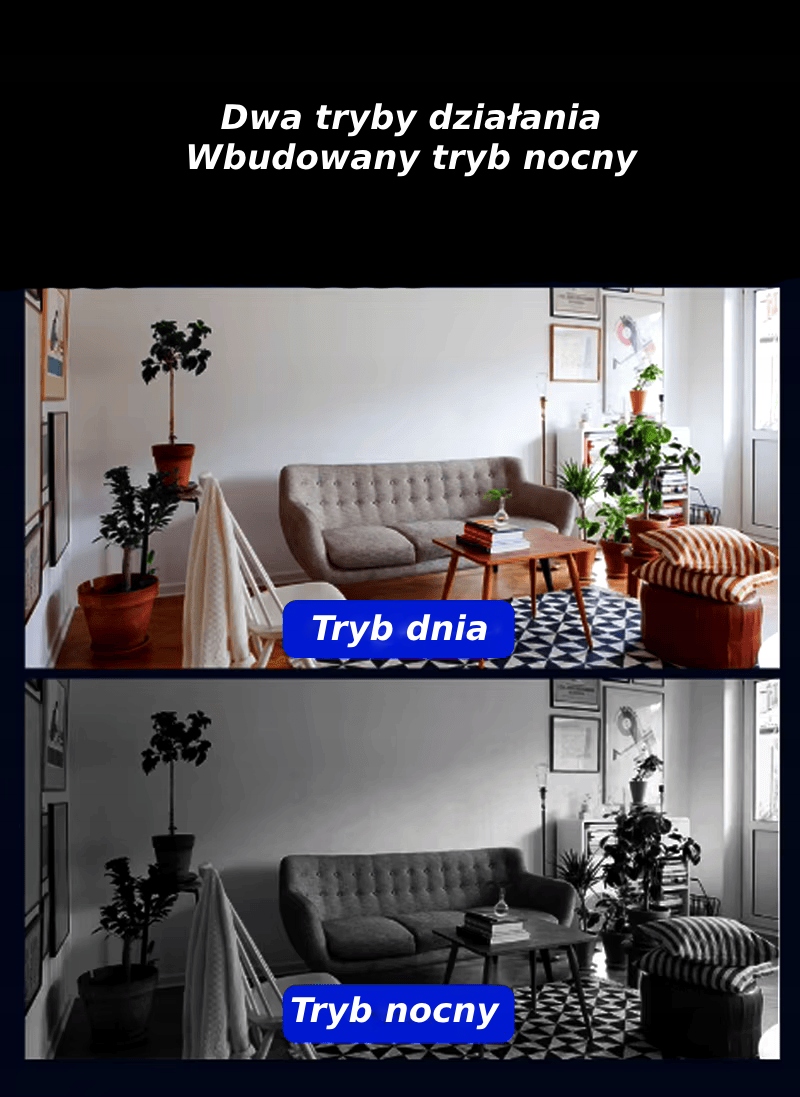 Ustawiony tryb niskiego zużycia energii - budzi kamerę do pracy tylko wtedy, gdy wykryję ruch, co może skutecznie poprawić żywotność baterii nawet do 12 dni na jednym naładowaniu!