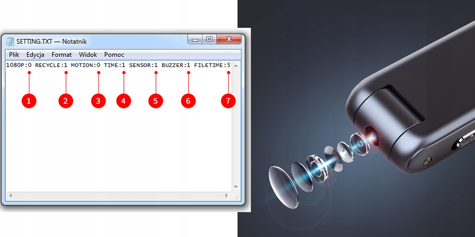 Kupując mini kamerę z naszej oferty - masz możliwość wykonać zaawansowane ustawienia przy korzystaniu z pliku setting.txt.