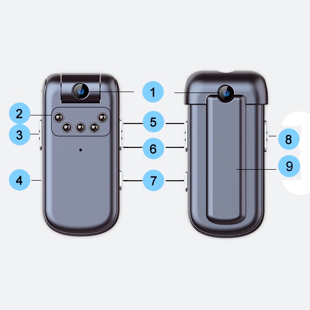 Dla jeszcze większej wygody korzystania z kamery mamy możliwość przekręcenia obiektywu o 180 stopni. Dzięki takiemu rozwiązaniu mini kamera może nagrywać ustawiona z dowolnej strony czy też leżąc na płasko.