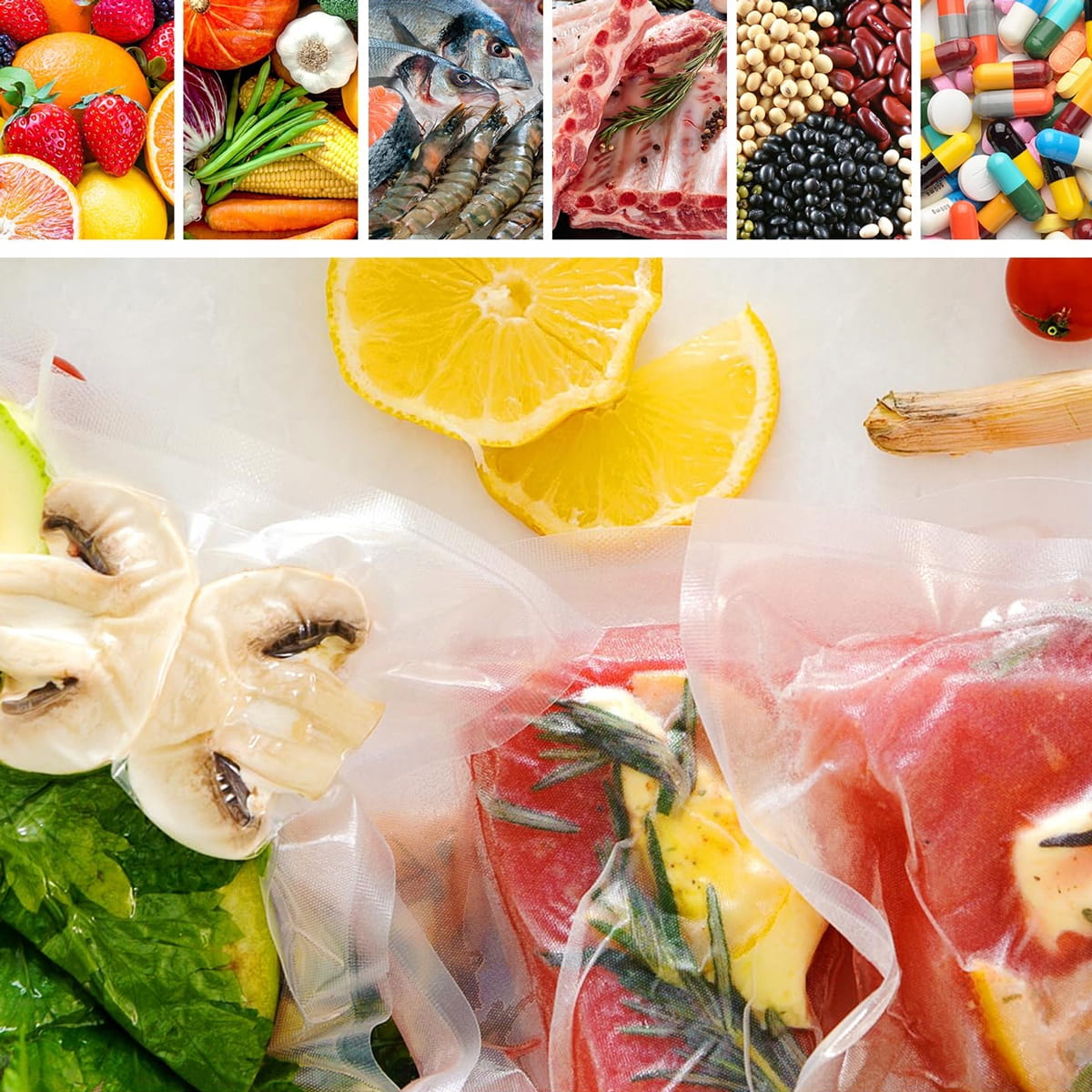 - Zabezpieczanie wartości odżywczych i świeżości, aby przedłużyć termin przydatności do spożycia, przechowywanie warzyw, owoców morza, żeber, fasoli i tabletek.