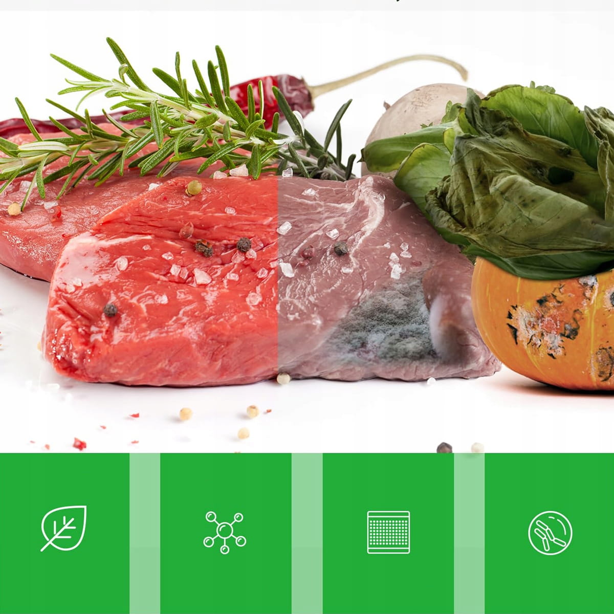 - Materiał o wysokiej wytrzymałości zapewnia izolowane od powietrza środowisko i utrzymuje żywność świeżą na dłużej.