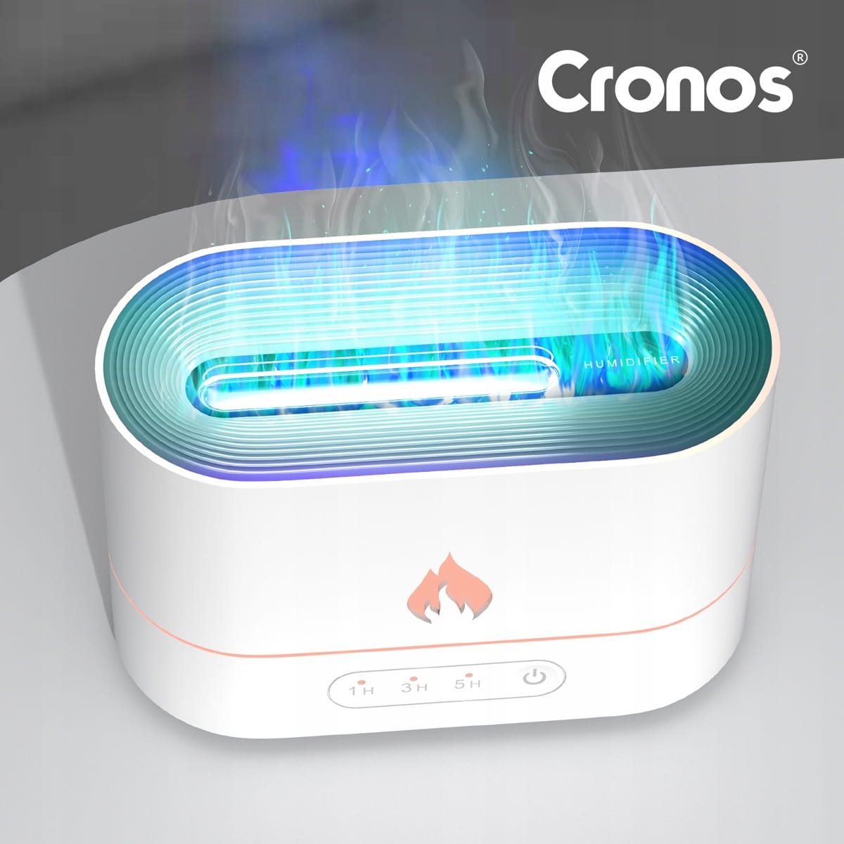 - Ten nawilżacz powietrza wyróżnia się tym, że emituje światło LED, które w połączeniu z mgiełką symuluje niesamowity efekt żywego i ciepłego płomienia 3D.