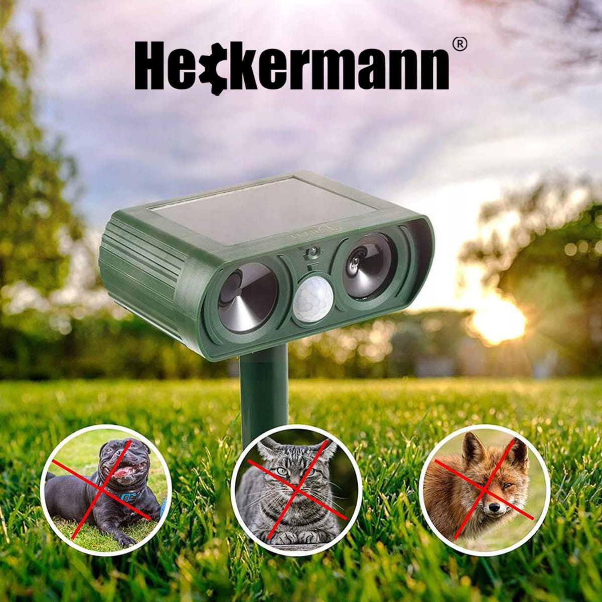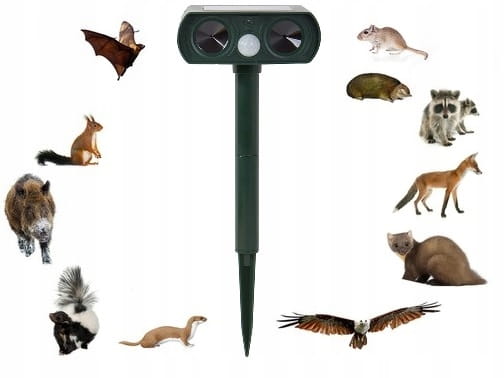 Ogrodowy, bardzo mocny ultradźwiękowy odstraszacz solarny na zwierzynę leśną!
