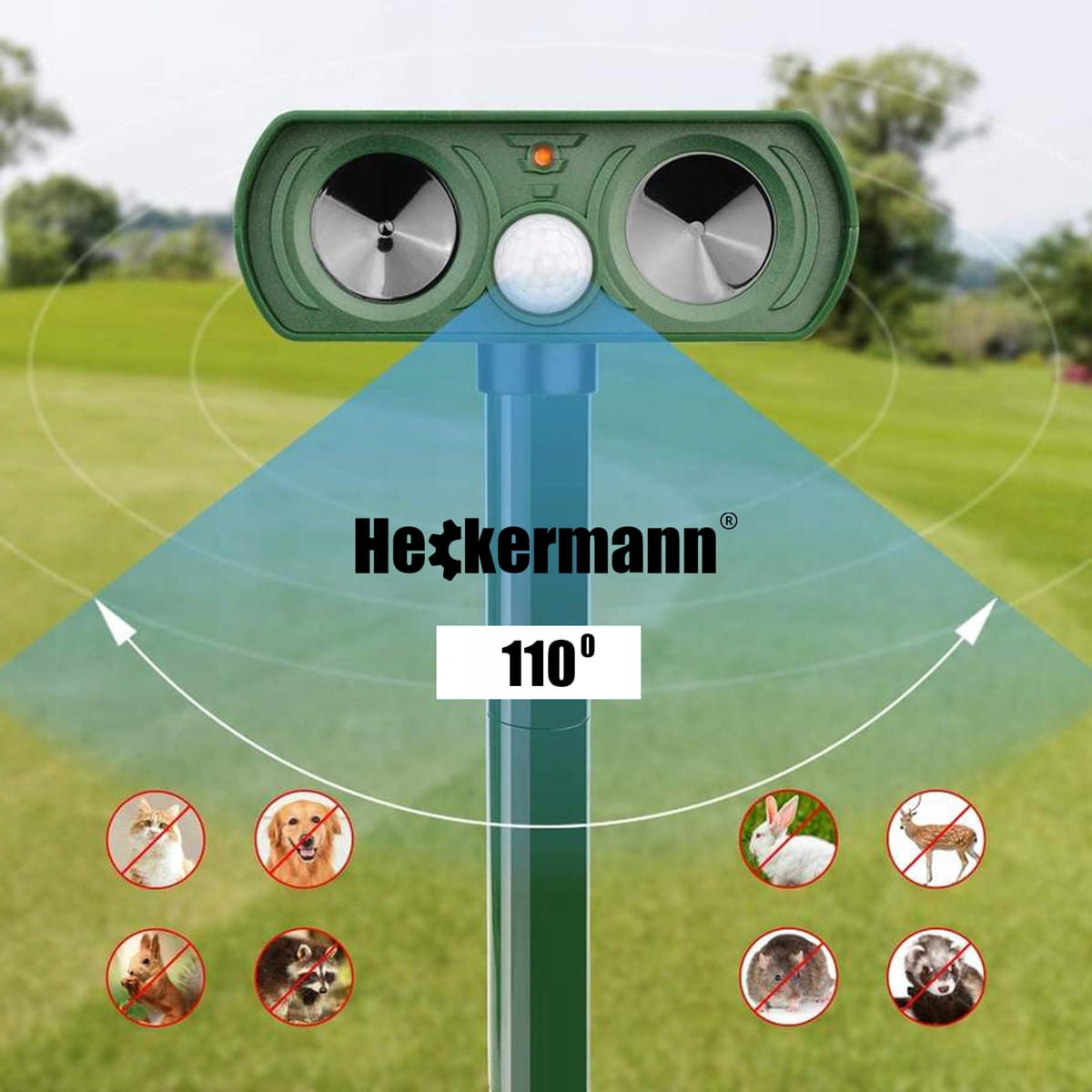 Wykrywa ruch z odległości do 8 metrów po czym emituje dźwięk niesłyszany dla ludzi, ale uciążliwy dla zwierząt na większa odległość nawet kilkudziesięciu metrów. Po 15 sekundach ponownie wchodzi w tryb uśpienia jeżeli nie wykrywa żadnego ruchu. Posiada szeroki kąt widzenia 110° i działa non-stop zarówno w dzień, jak i w nocy. Solarny odstraszacz to efektywny sposób odstraszania wielu zwierząt leśnych, bez użycia drastycznych środków. Badania laboratoryjne pokazały, że fale ultradźwiękowe atakują system słuchowy oraz nerwowy większości szkodników, sprawiając im tym samym ból i dyskomfort.