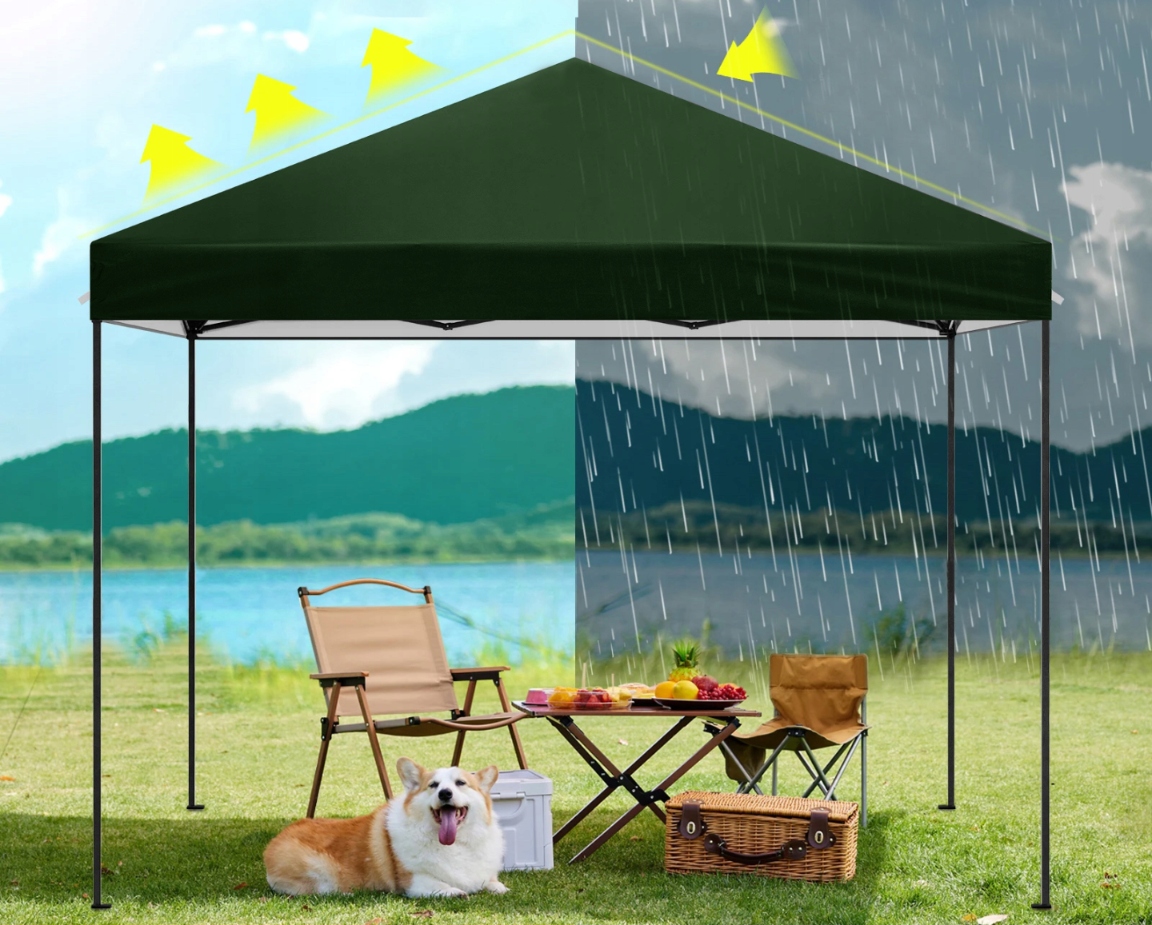 Dzięki szybkiej i łatwej opcji rozkładania oraz składania, pawilon jest wyjątkowo praktyczny i wygodny w użyciu. Jego nowoczesny design i elegancki zielony kolor doskonale komponują się z każdym otoczeniem.