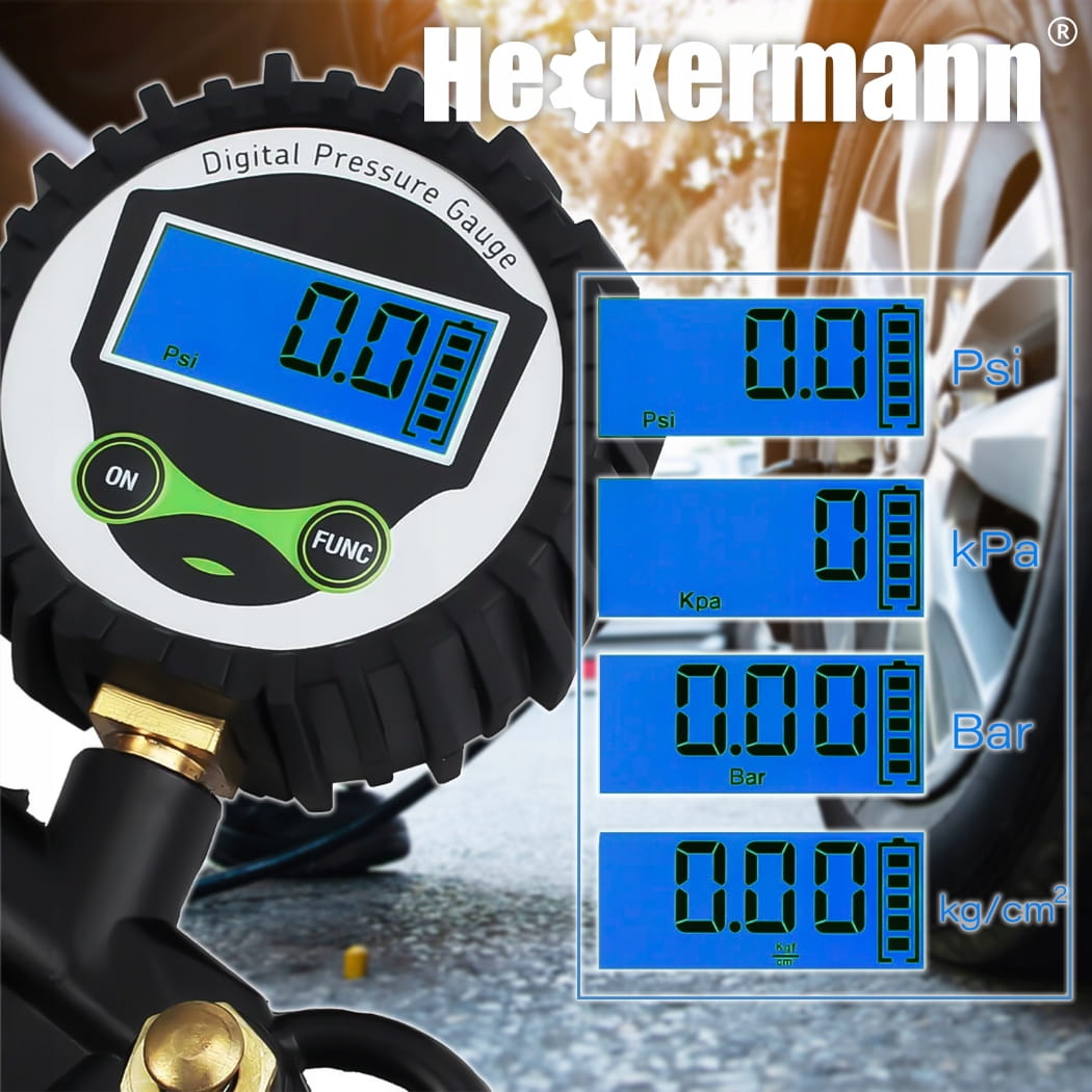 - Wyposażony jest w precyzyjny, cyfrowy manometr, zasilany dwiema bateriami AAA.