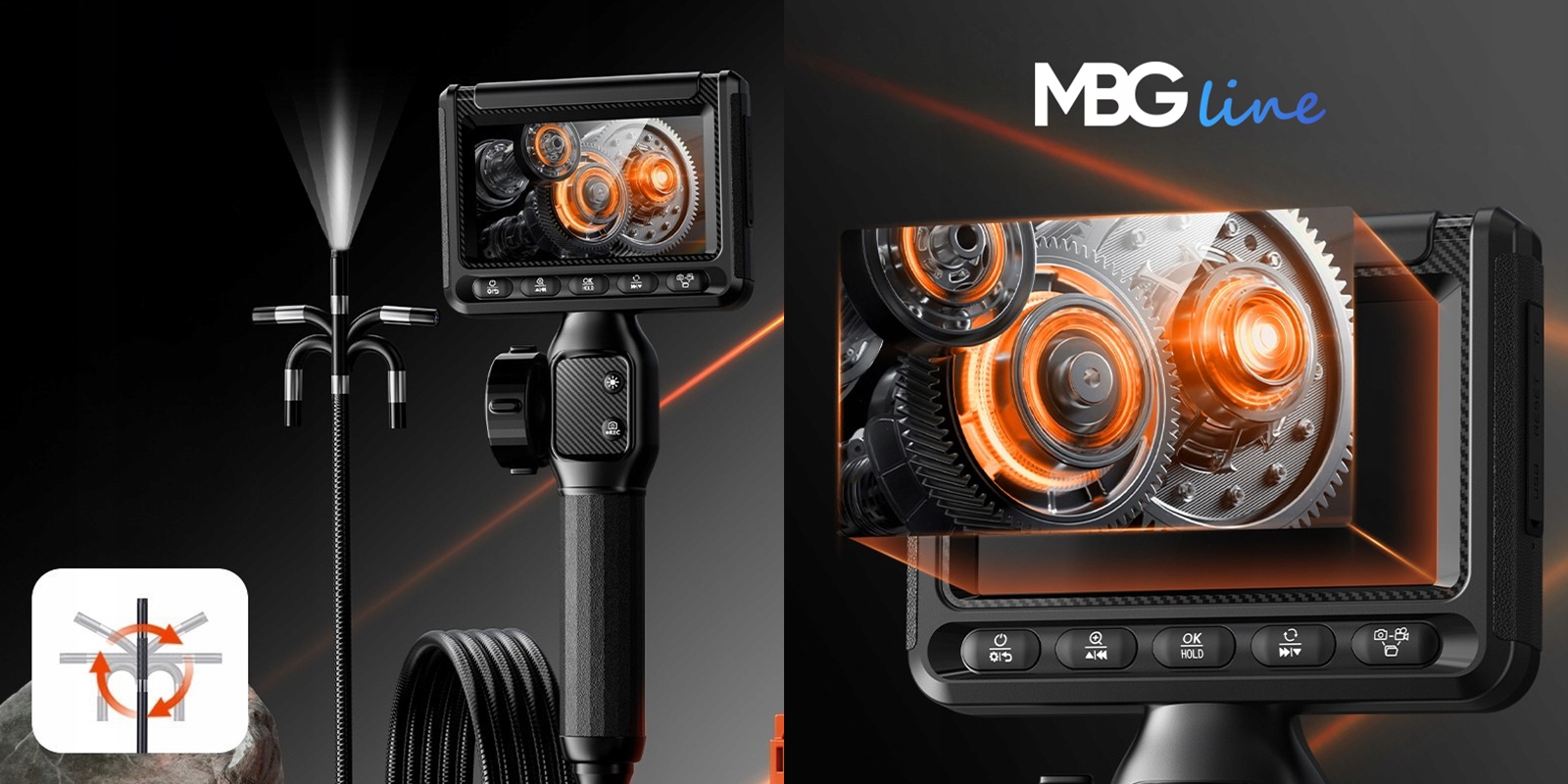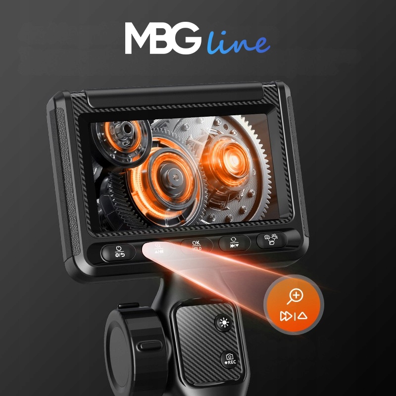 MBG Line S23 to urządzenie stworzone do pracy tam, gdzie zwykła latarka i wzrok nie wystarczą. Wbudowany ekran 4,3" IPS zapewnia wygodny, czytelny podgląd na żywo, dzięki czemu możesz szybko ocenić stan kontrolowanego miejsca.