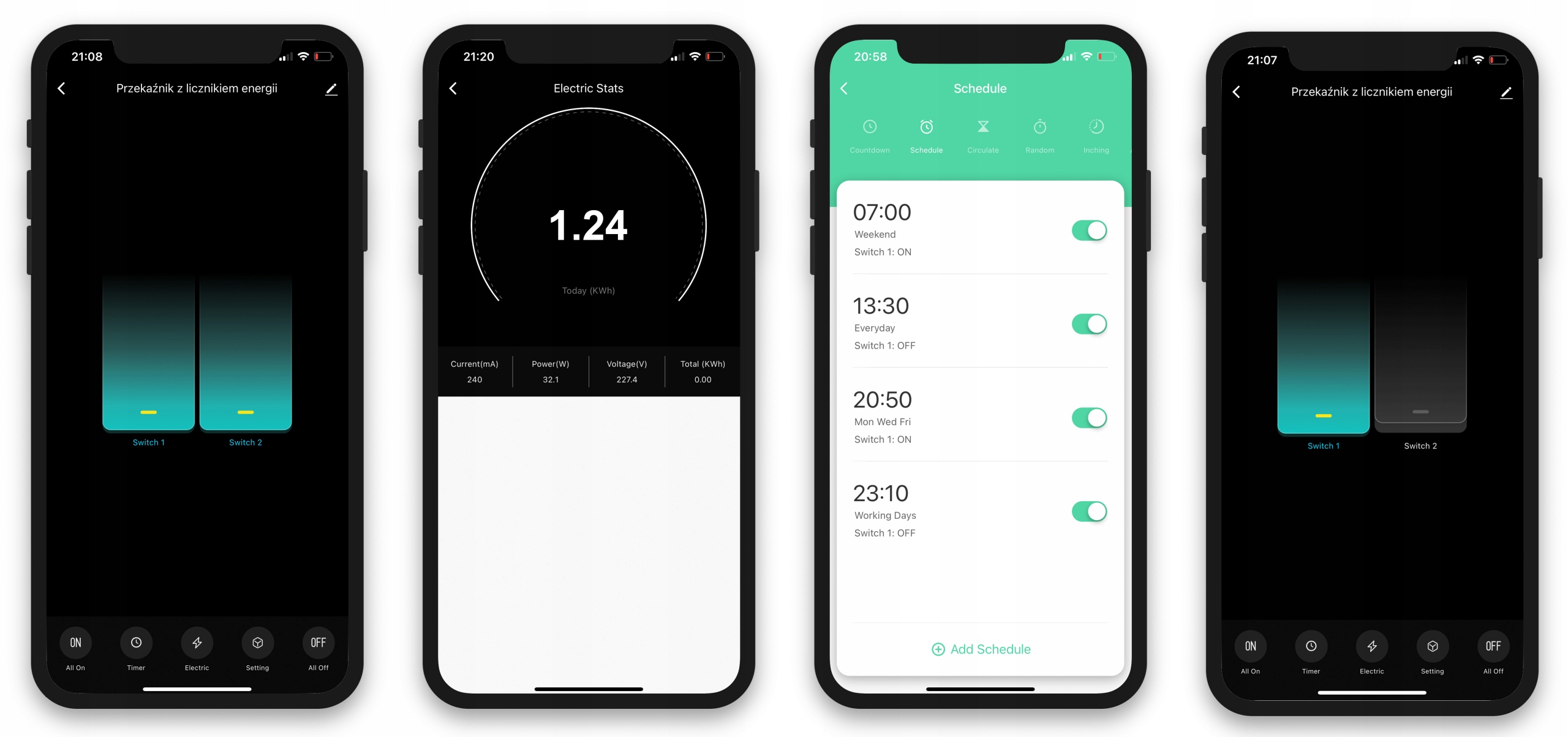 - Countdown - odliczanie - jednorazowe wyłączenie po zadanym czasie