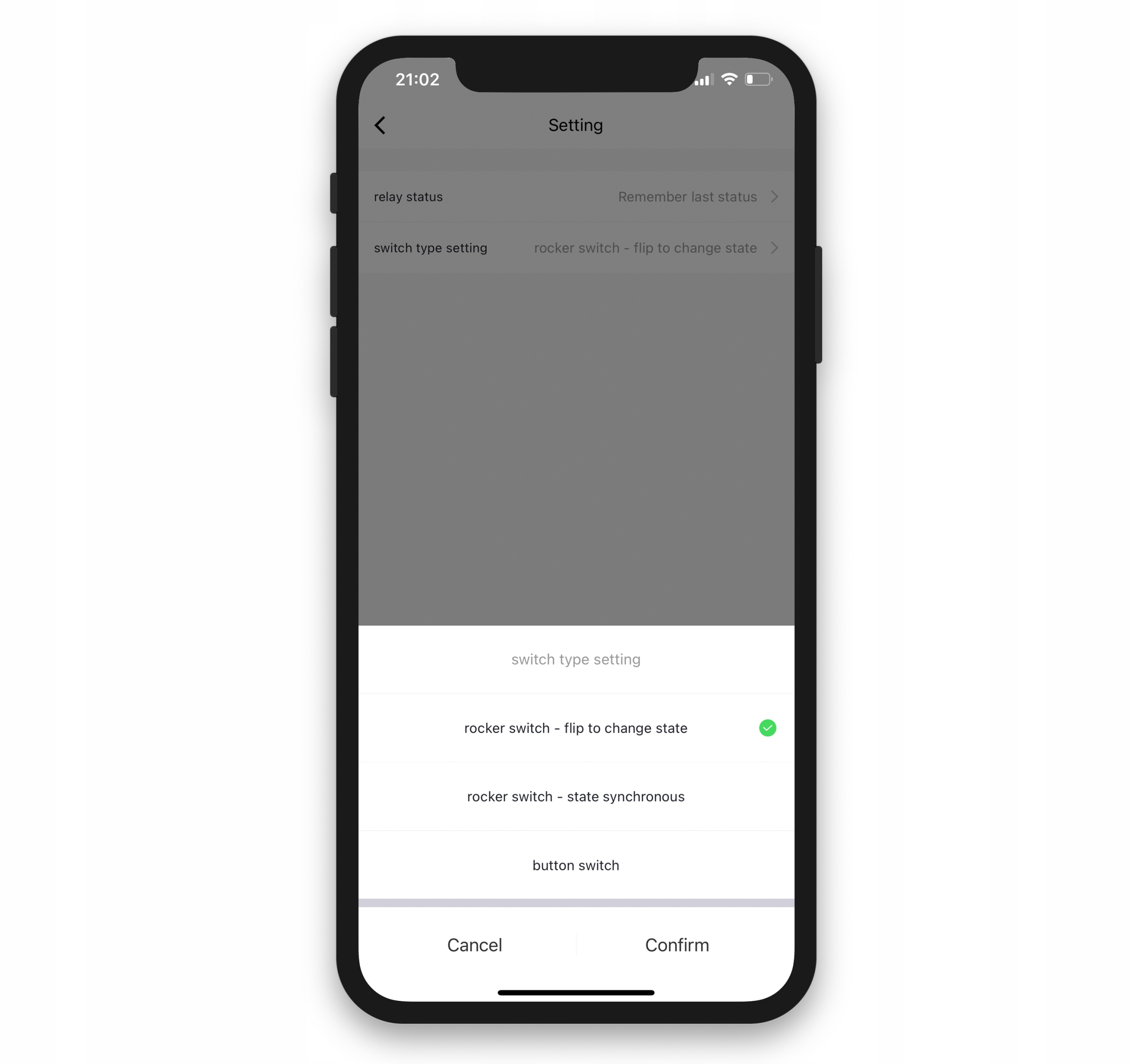 - Współpracuje z tradycyjnym włącznikiem (bistabilnym)