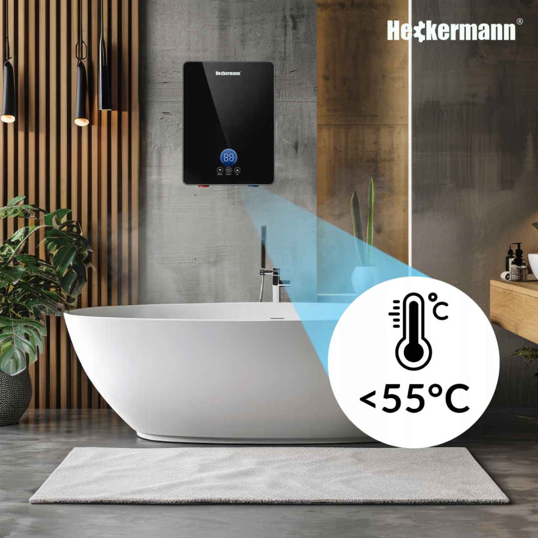 Zakres temperatury: 30–55 °C pozwala dopasować ustawienia do własnych potrzeb – od letniej wody do komfortowego ciepła.
