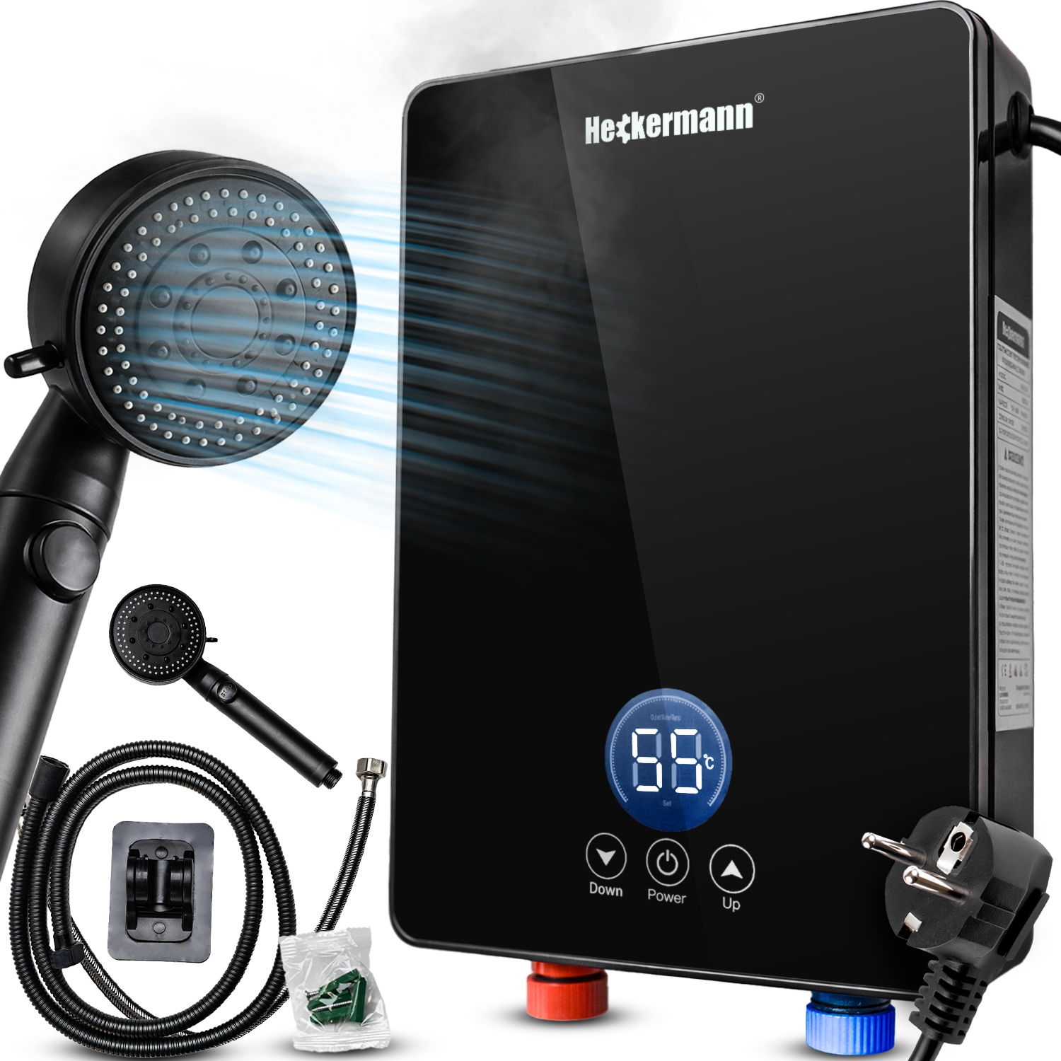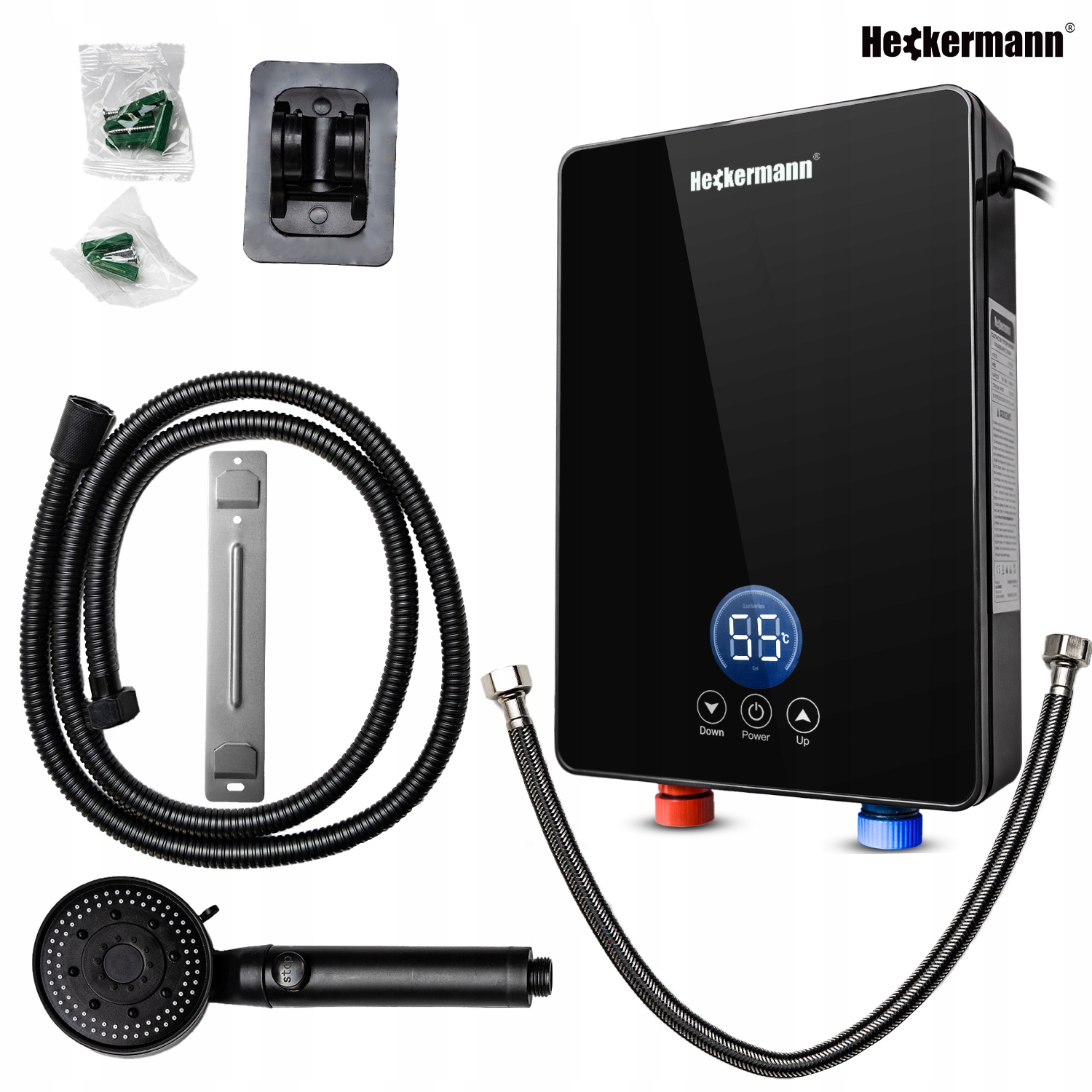 Przepływowy elektryczny podgrzewacz wody 3.5 kW Heckermann DSK-55D to kompaktowe urządzenie, które zapewnia natychmiastowy dostęp do ciepłej wody – dokładnie wtedy, kiedy jej potrzebujesz.