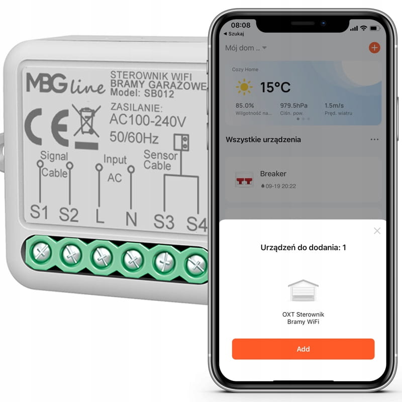 Inteligentny sterownik bramy garażowej WiFi działający w aplikacji Tuya i Smart Life wyposażony w czujnik informujący o położeniu bramy!