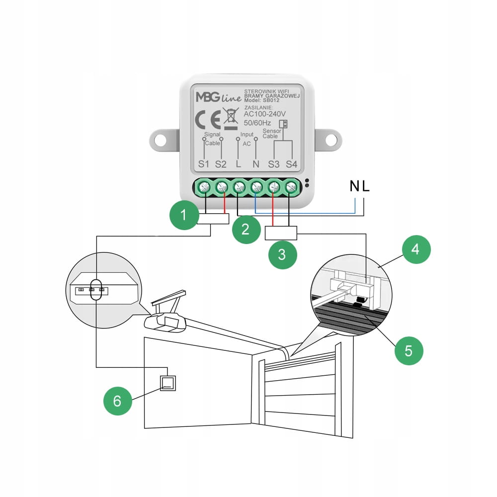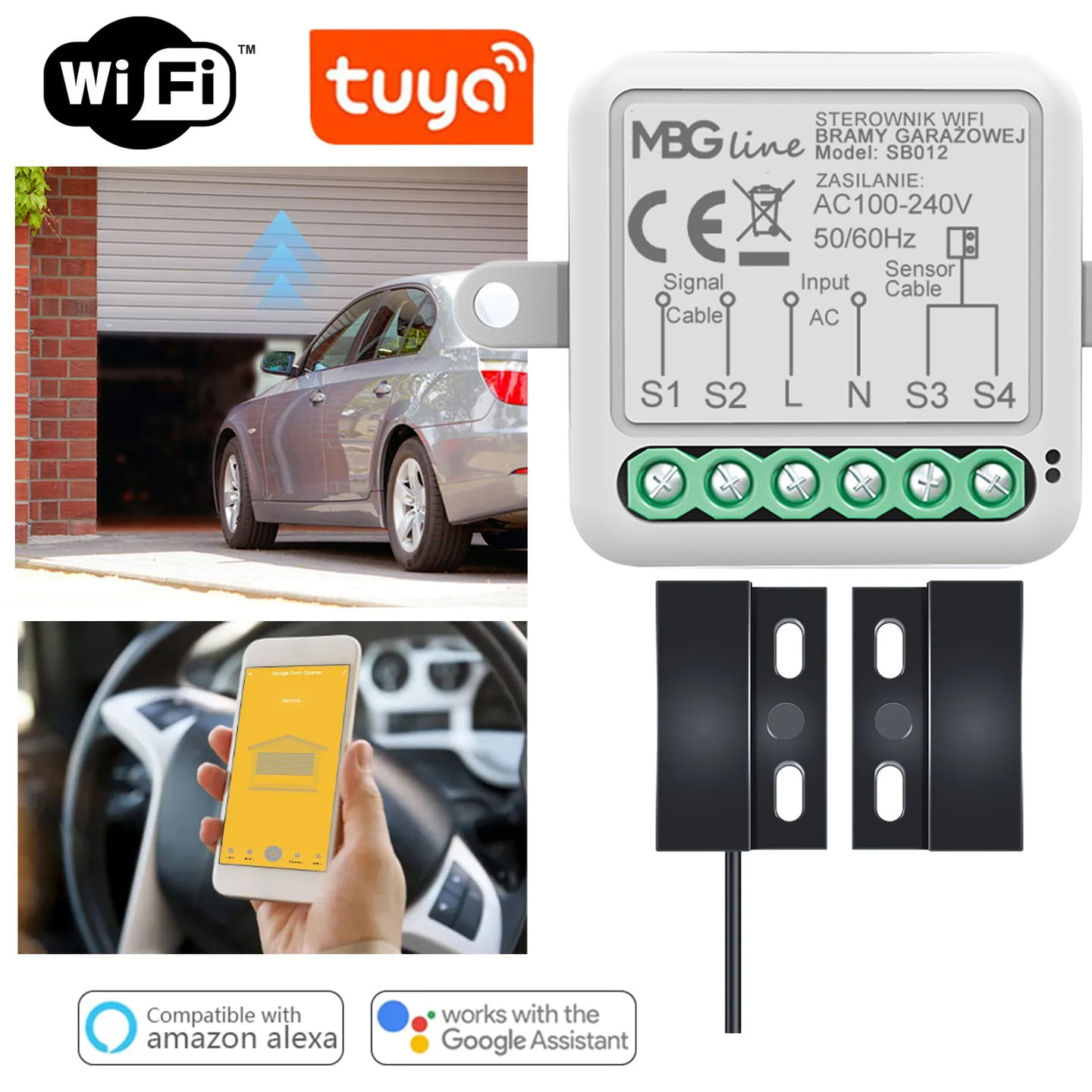 Sterownik Bramy Garażowej Moduł WIFI Bluetooth TUYA SMART + Czujnik Zasilanie sieciowe