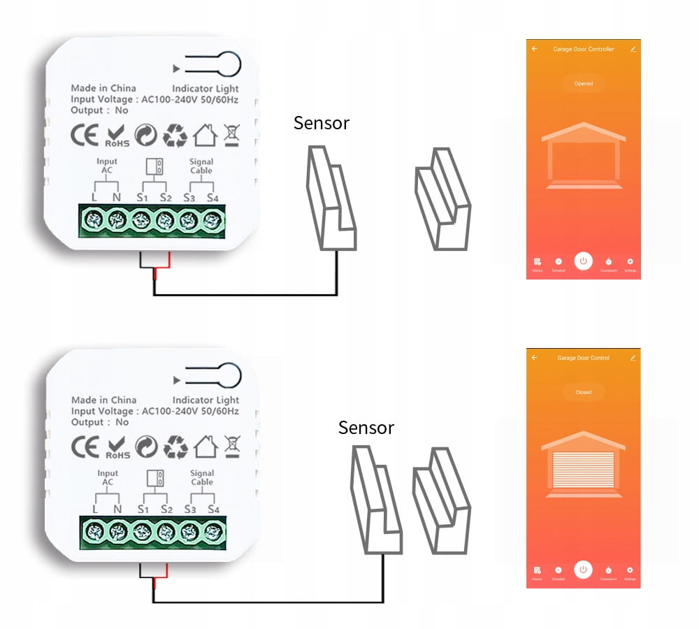 Sterownik bramy garażowej ZigBee Tuya z czujnikiem przewodowym otwarcia