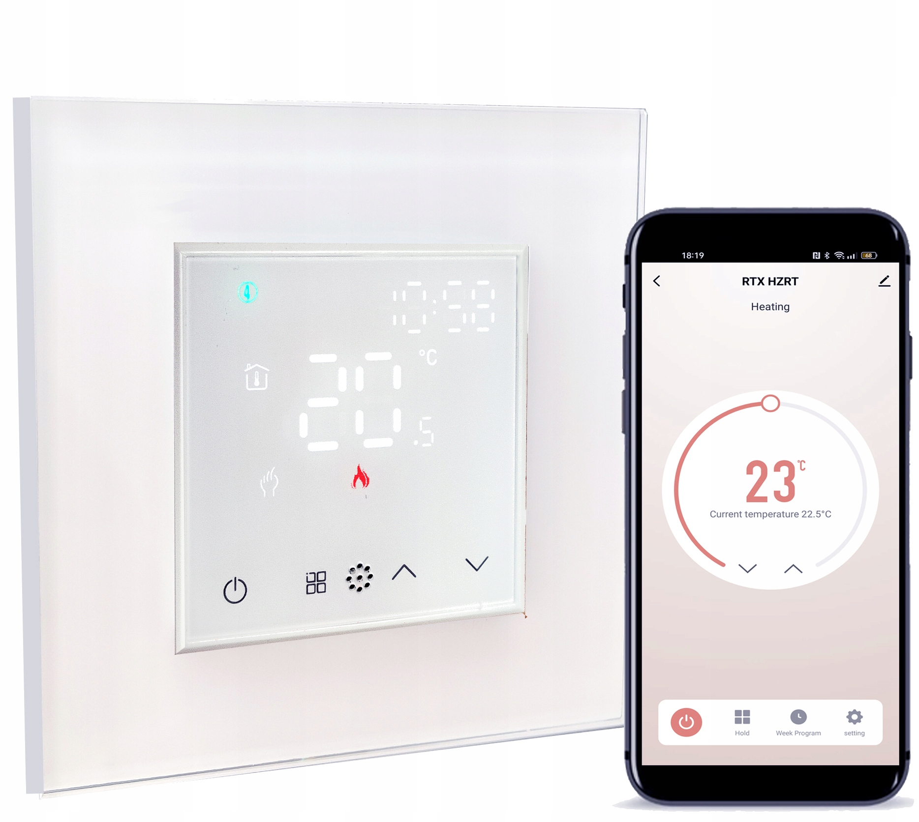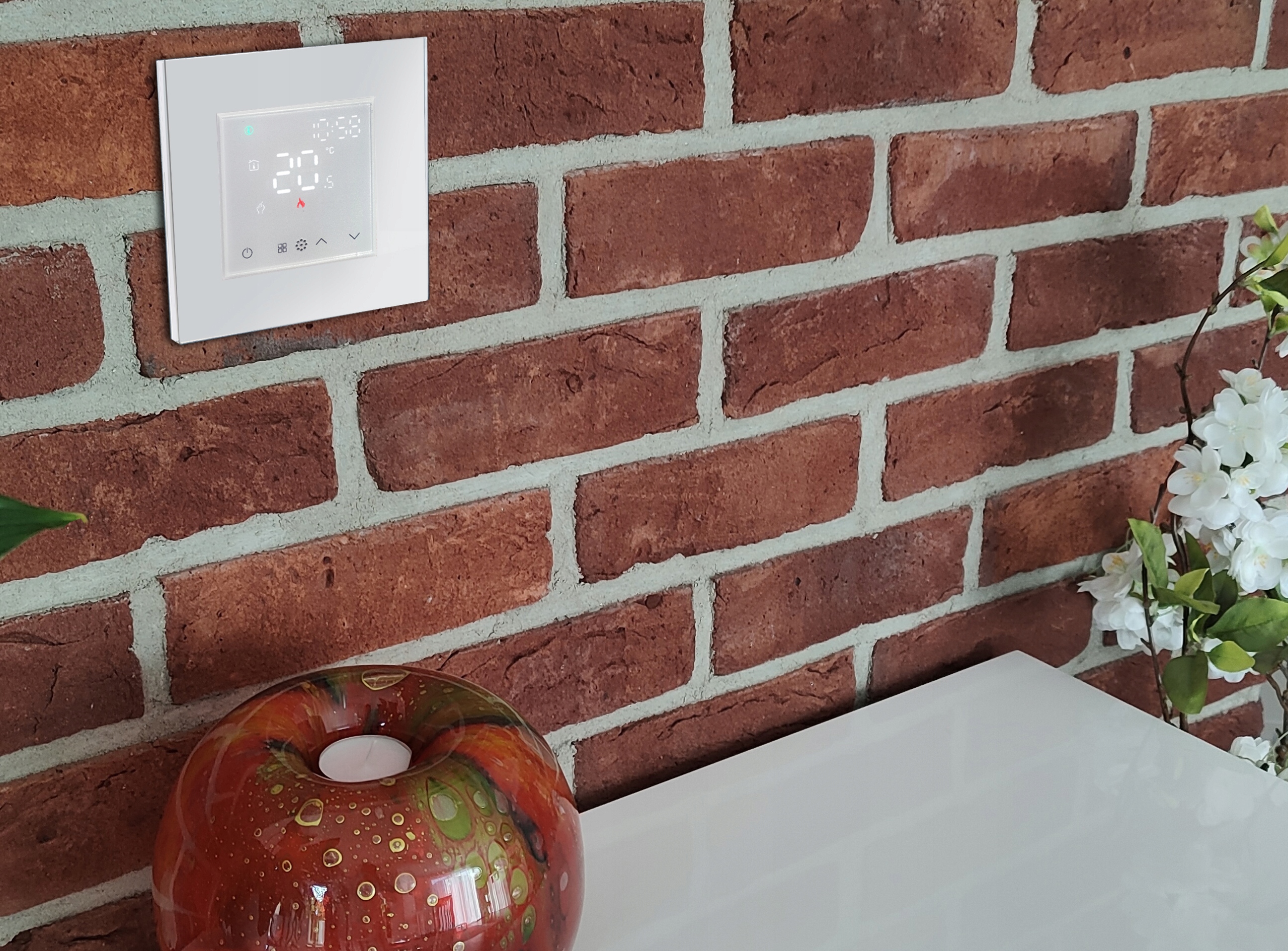 - Moduł termostatu (kolor biały) + szklana ramka