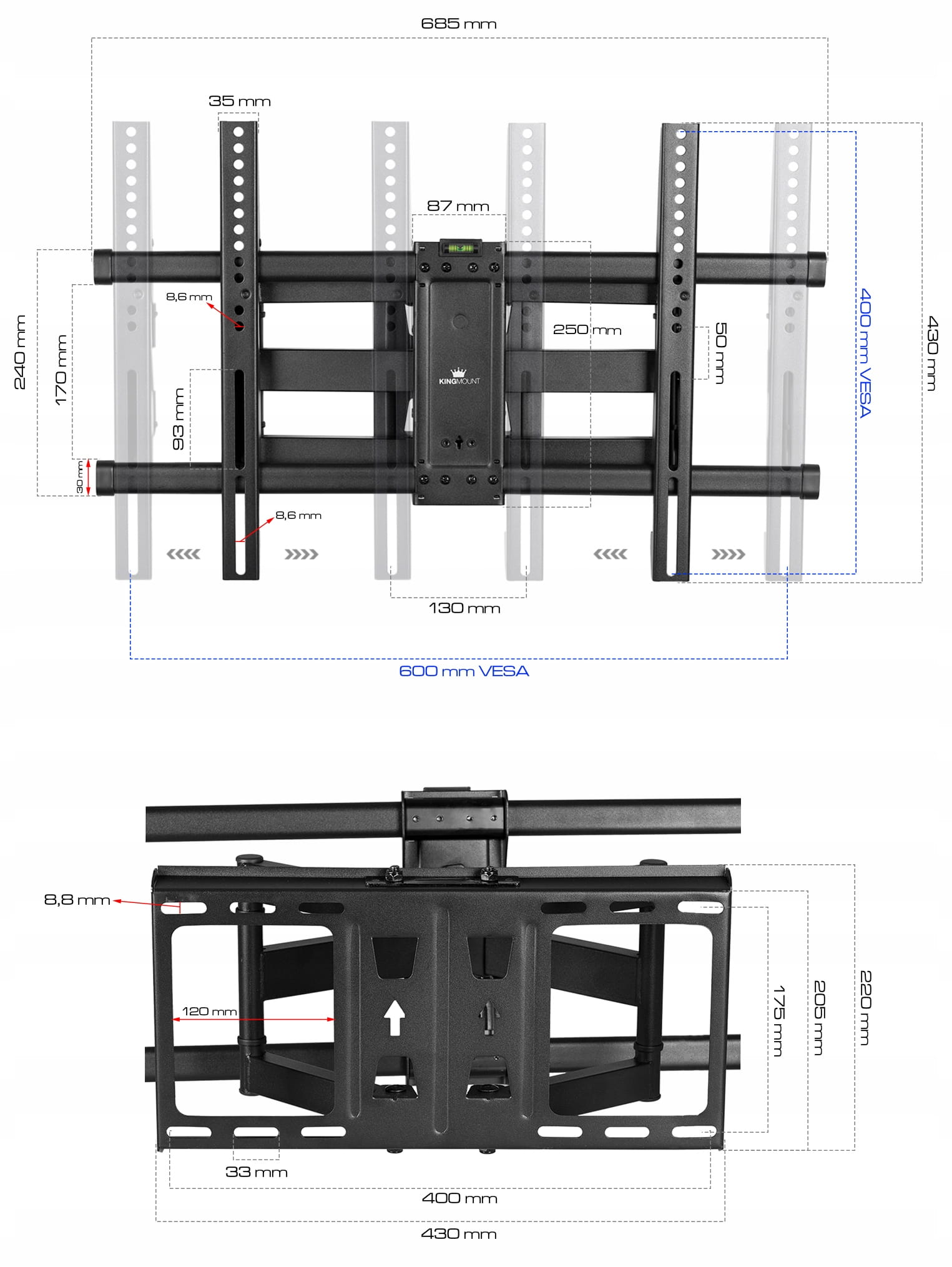 Super mocny uchwyt do telewizora regulowany wieszak TV 32-70-85 do 60 kg King Mount