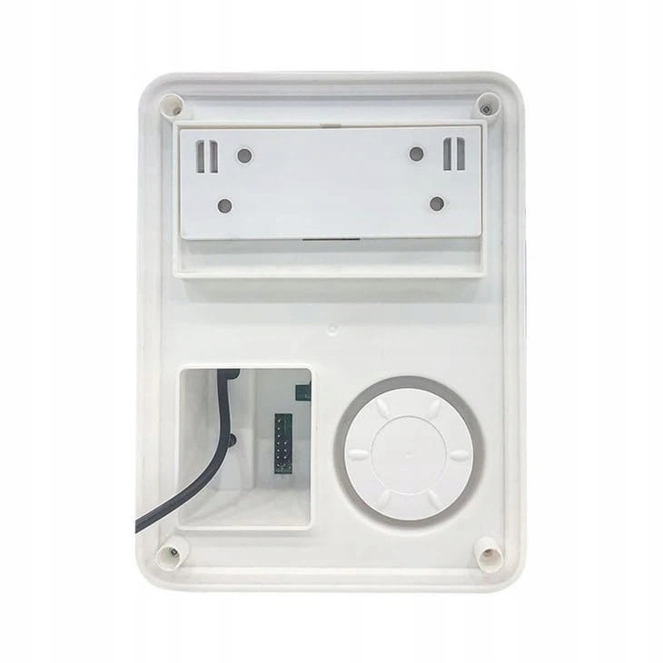 Na tylnej obudowie znajduje się przycisk w formie blaszki, który zabezpiecza przed nieuprawnionym zdjęciem syreny ze ściany.